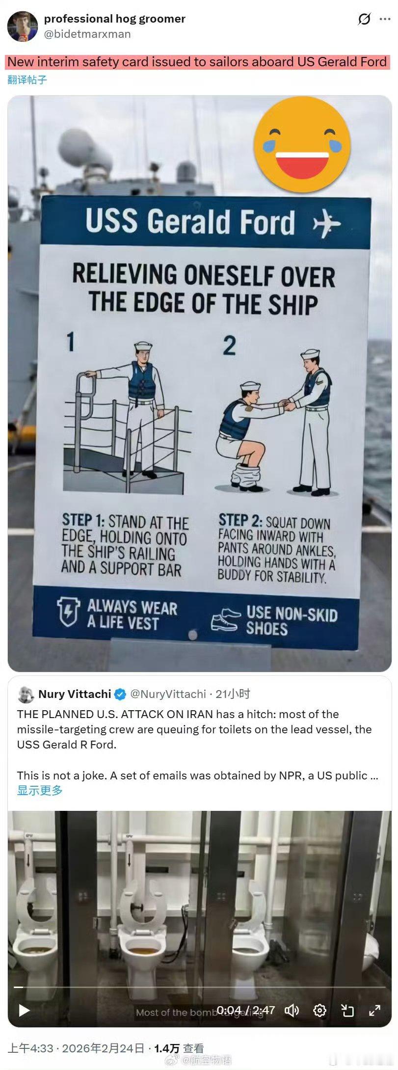 福特舰上的温馨提示上厕所都快整出各种流派了