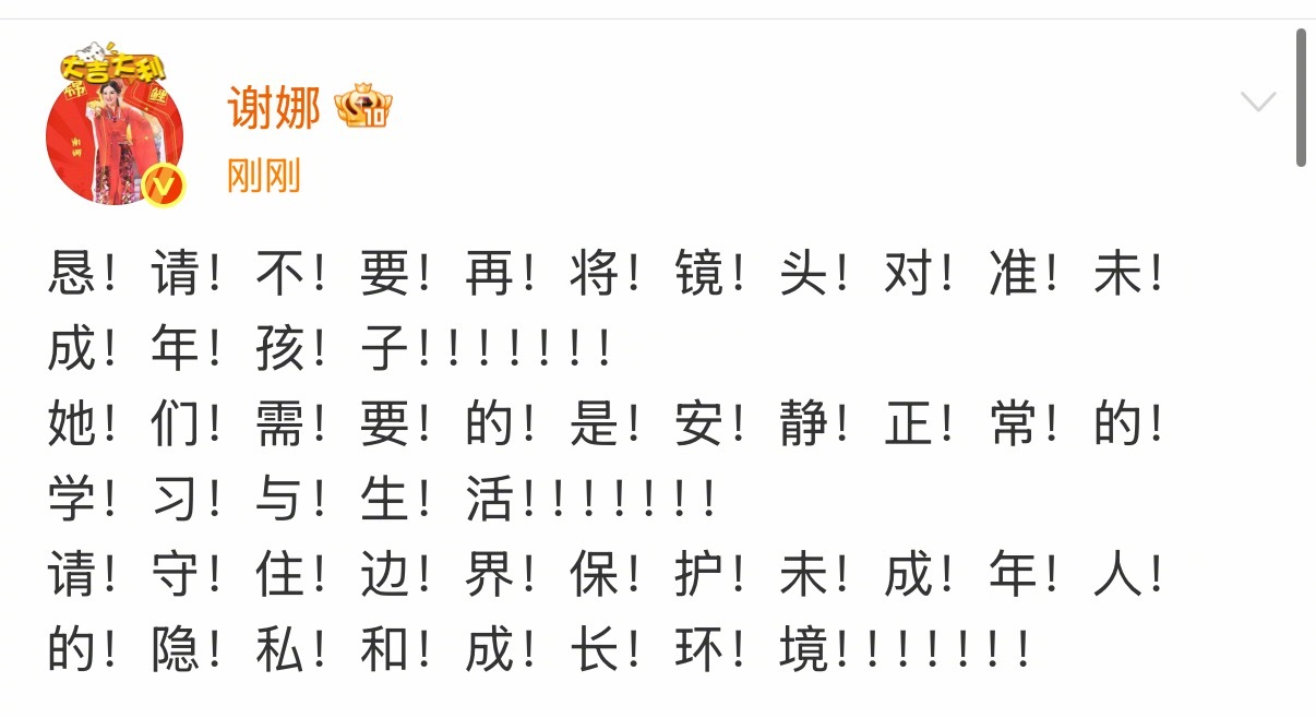 有八卦媒体偷拍谢娜带双胞胎女儿上课后,谢娜发文恳请不要将镜头对准未成年!