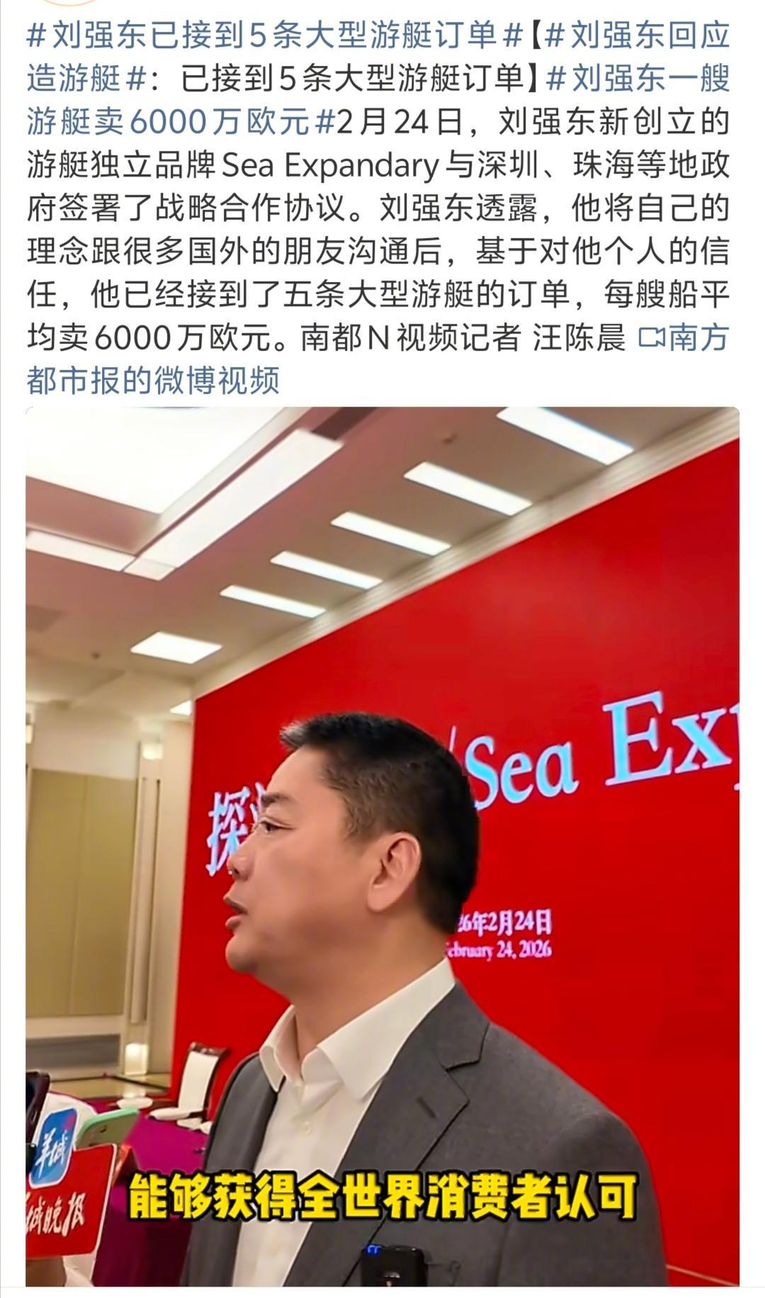 刘强东已接到5条大型游艇订单 4.8亿元的游艇与10万元的游艇,这中间隔了一条马里亚纳海沟。