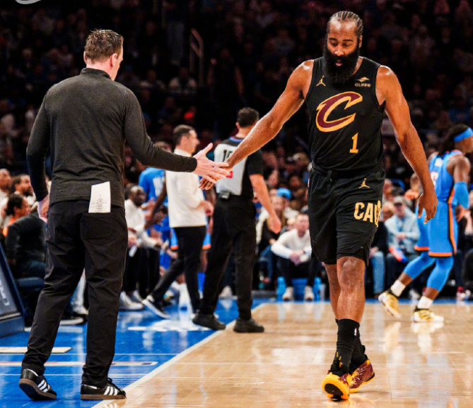 哈登20分9助5板仍不敌雷霆获得加盟后首败,雷霆在亚历山大缺阵的情况下仍投出了51%的三分命中率,愣是把骑士给射穿了。不得不说,雷霆主教练戴格诺特确实有点东西,战术跑位,五小阵容轮转,打得不比勇士科尔差!