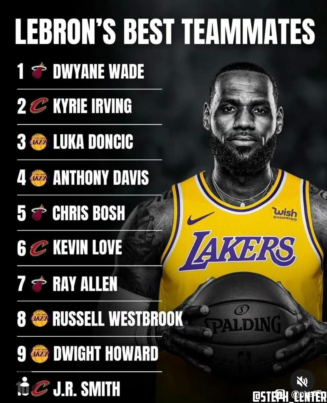 这个终于出来了,詹姆斯队友排名。 韦德第一,欧文第二,东契奇第三。 现在和东契奇还没有夺冠呢,其实东契奇应该实力第一。 有消息詹姆斯回归骑士,米切尔,哈登也进来那更好玩了。[大金牙]
