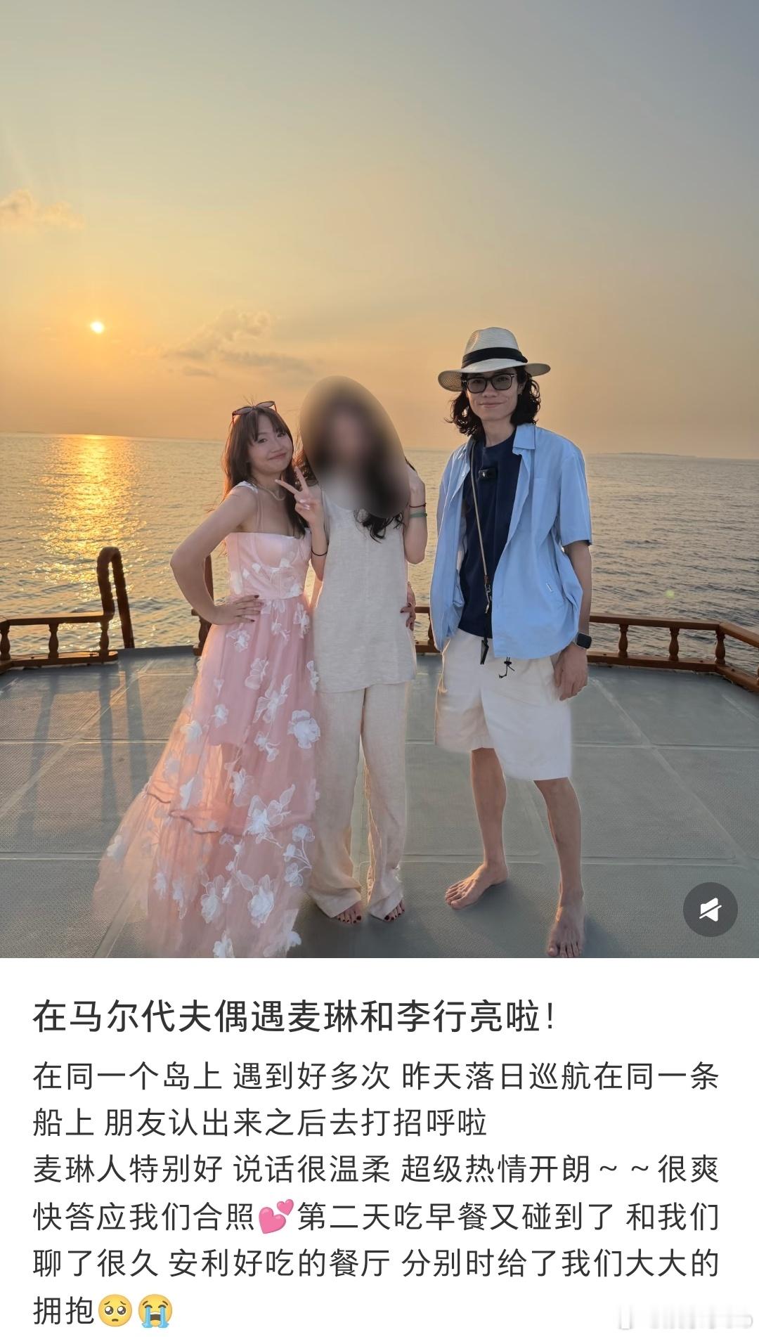 网友晒了自己在马尔代夫旅游时偶遇麦琳和李行亮的照片,麦琳现在的状态跟之前真的判若