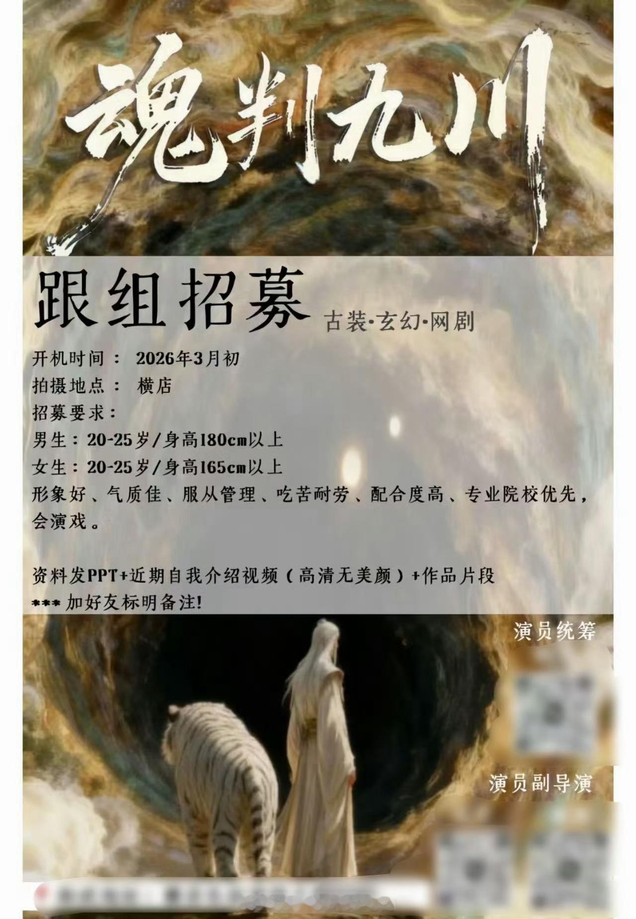 田嘉瑞《魂判九川》3月初横店开机期待大男主云九川田嘉瑞云九川