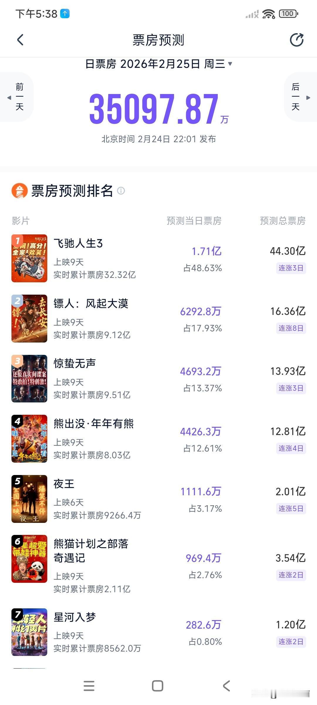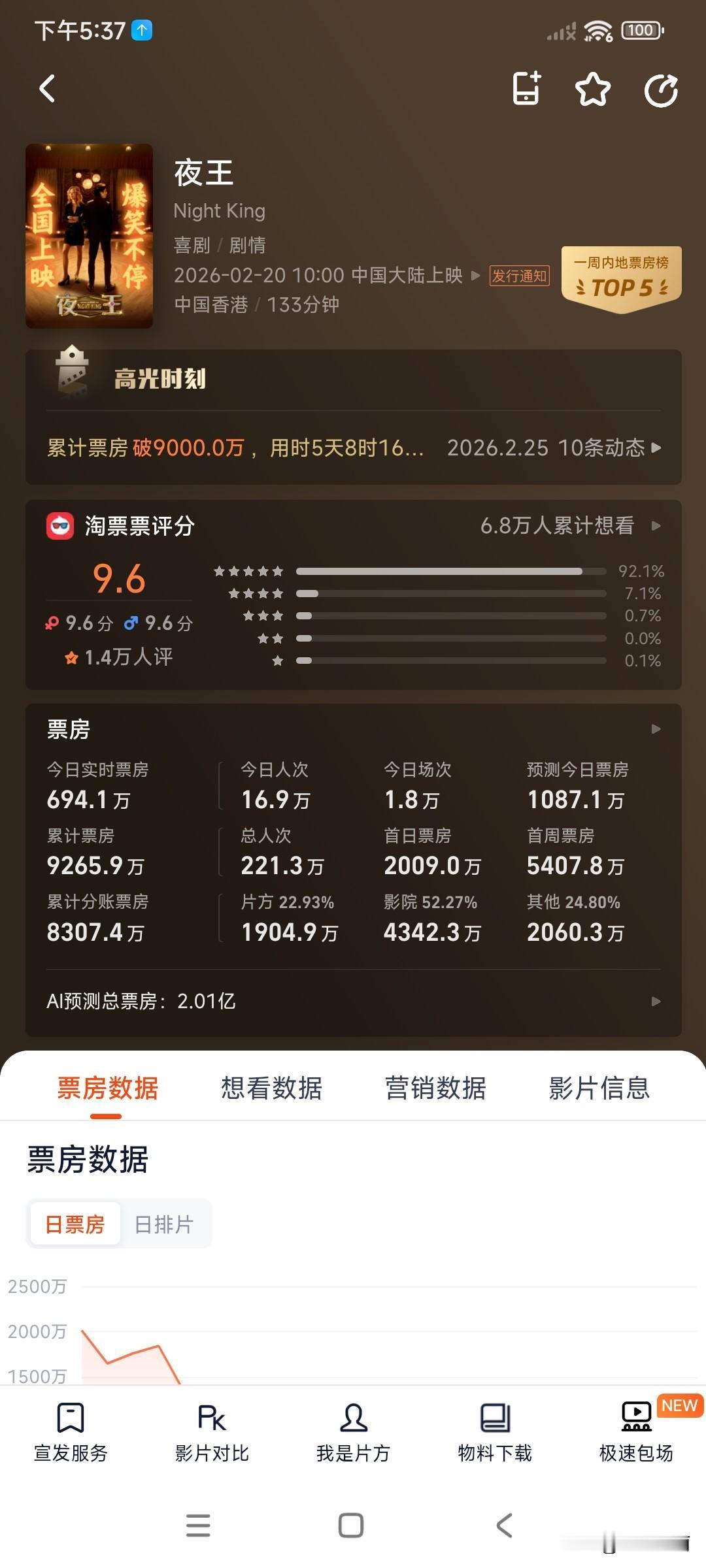 上映6天票房就9000多万了,势头有点猛啊!晚入场几天已经超过了星河入梦 ,没想到这个春节档吃到真细糠的是广东人[奸笑]