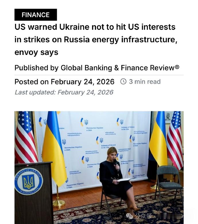 奥尔加·斯特凡尼希娜表示,在乌克兰攻击黑海东岸的俄罗斯油港新罗西斯克、破坏运送哈萨克石油的管道枢纽并影响美国投资后,特朗普政府曾对乌克兰发出正式外交通知,敦促乌克兰避免损害美国的经济利益,但并未要求乌克兰停止攻击俄罗斯的军事或能源目标。
