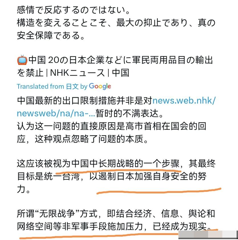 日本众议院议员中山泰秀表示,要对中国进行反威慑!2月25日,在中国反制日本20家实体之后,日本政客中山泰秀表示,中国此次的出口管制,并非针对日本的一时不满表态。将高市总理国会答辩视为直接原因的看法,是“误判”了本质。 这事儿从根上看,就是中国在实现台湾统一这一中长期战略里,特意给日本强化安保政策套上的一道牵制枷锁,毕竟这些年日本在安保路上越走越偏,早就不是当年“专守防卫”的样子了。 中国这次用出口管制出手,说白了就是用非军事手段敲警钟,这种经济、信息、舆论、网络组合发力的“超限战”,早就不是停留在纸面上的概念,而是实实在在落地的操作。 而且中国这步棋下得极有章法,明显是盯着包括美国总统任期在内的主要国家政治日程,算准了国际政治周期才出手,绝非临时起意,也正因为这样,日本那些指望靠“中国+1”就能避开压力的想法,未免太天真了。 中国此次列入管控名单的20家日本实体,没一个是随机选的,全是三菱造船、IHI等深耕日本军工产业链的关键角色,要么造飞机、火箭,要么给日本防卫省提供核心设备。 说白了就是日本强化安保、推进“再军事化”的重要抓手,中国卡断对这些实体的两用物项出口,就是精准掐住日本军工扩张的“补给线”,这可不是针对某一次答辩的一时不满,而是长期战略里的一步关键棋。 就像去年中国对超硬材料、稀土设备实施出口管制,直接卡住美国和日本高端制造、军工体系的脖子,这次反制日本实体,不过是这种非军事施压手法的延续。 毕竟比起硬碰硬,用经济手段精准打击对方软肋,既合法合规,又能达到牵制效果,这就是“超限战”的高明之处——不费一兵一卒,却能让对方感受到实实在在的压力。 再说时机选择,中国挑在这个节点出手,显然是吃透了国际政治周期,眼下美国总统任期内的亚太战略调整、日本连续14年增加防卫预算,甚至计划取消国防开支上限、鼓噪“拥核”。 这些都被中国看在眼里,选在这个时候反制,既能敲打日本的安保扩张野心,也能向国际社会传递中国维护主权和地区安全的决心,更能牵制美国借日本在亚太围堵中国的布局,可谓一举多得。 至于日本寄希望的“中国+1”战略,本身就透着不切实际,这玩意儿最早是日本自己提出来的,想着把部分生产转移出去避开对中国的依赖。 可他们忘了,中国拥有全球最完整的产业链,不管是两用物项的核心技术,还是稀土冶炼、高端制造的关键环节,日本短期内根本找不到能完全替代的国家。 就像这次被管控的富士通,一边做民用IT服务,一边给日本自卫队开发通信系统,还和美军工巨头合作研发两用技术,中国一出手管控,它的技术研发和产能扩张就受了制约,就算日本想找其他国家合作,没有中国的核心设备和技术支持,也只能是纸上谈兵。 说白了,“中国+1”顶多能稍微分散一点风险,却根本挡不住中国的组合式施压,毕竟中国的牵制不是单一针对某一家企业,而是针对日本整个军工安保体系,从研发、制造到人才培养,形成了全方位的精准管控,这种情况下,仅凭简单的产业链转移,根本解决不了问题。 中山泰秀能看清这一点,也算日本政客里少有的清醒者,毕竟大多数日本政客还在抱着“中国是一时不满”的幻想,却没意识到,中国的每一步反制,都是围绕台湾统一的中长期战略展开,都是为了牵制日本的安保扩张。 这种“超限战”式的施压,只会随着日本的持续越界而不断升级,仅靠“中国+1”这种自欺欺人的办法,根本扛不住。