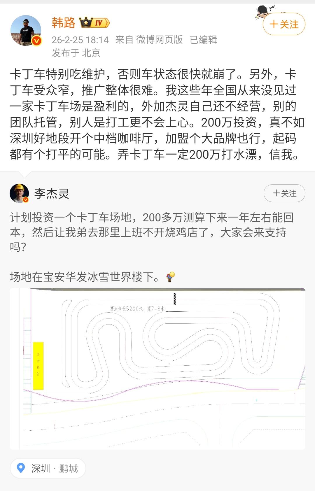 韩路:卡丁车特别吃维护,国内就没有见过玩卡丁车盈利的,还不如开一个中端的咖啡品牌,最起码回报还有打平的可能! 国内爱好汽车的玩家本身占比就非常的低,卡丁车更属于小众之中的小众,能够收回投资的可能性不大。 除非是游乐园里面的某一个单项的游乐项目,比如说某个爬山的项目,下山的时候可以开卡丁车,像这种项目回本才快。 各位是怎么看的?欢迎评论区留言。
