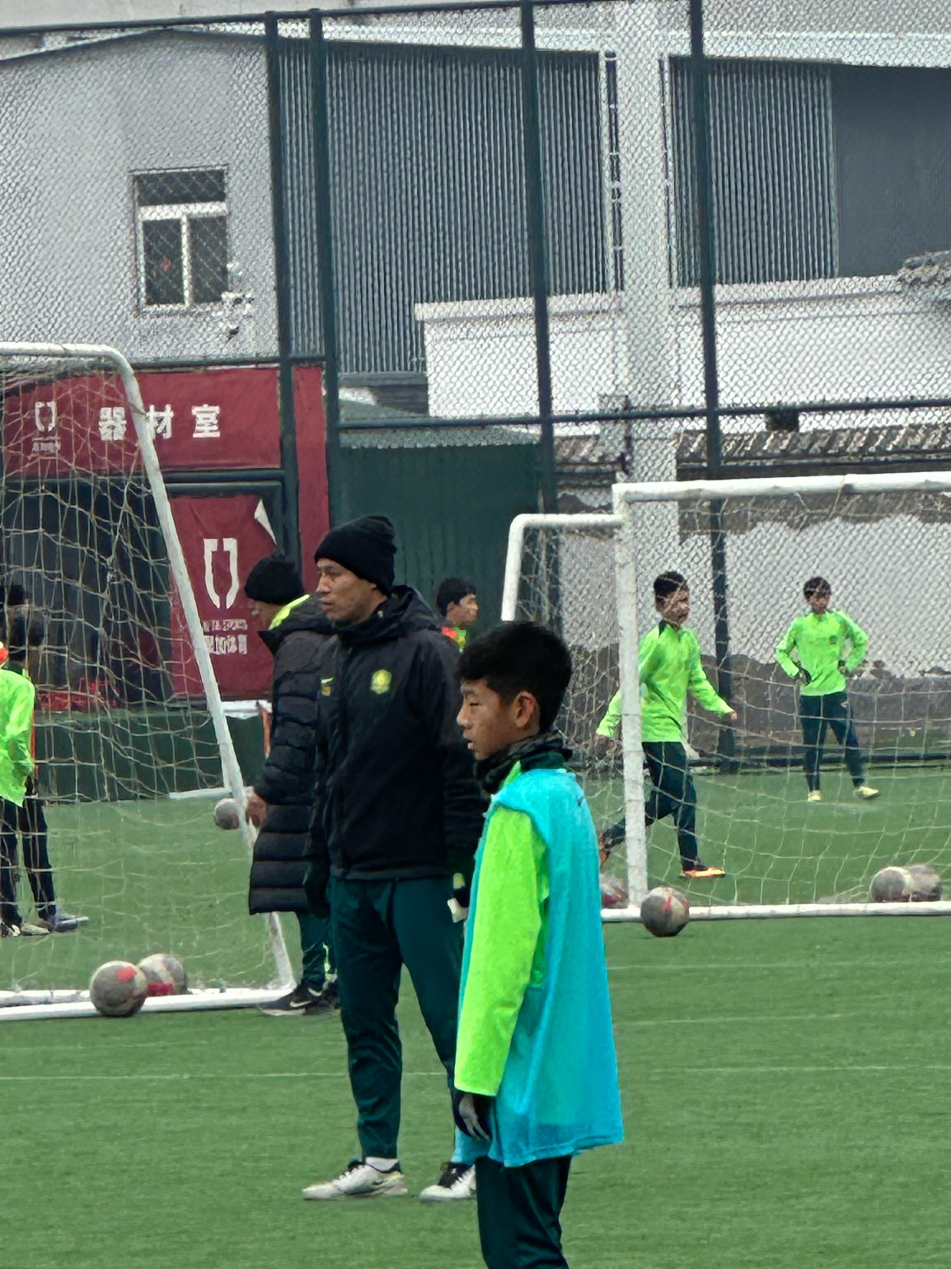 朱朝庆指导带领国安U12梯队在聚加基地训练。