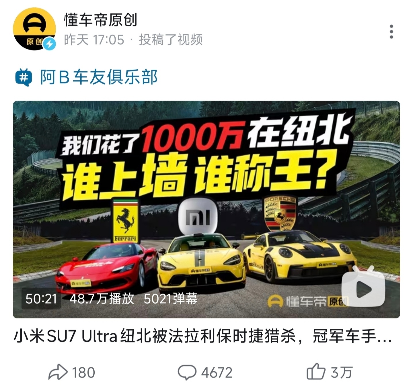 当大家看小米和法拉利保时捷这些顶尖跑车同台竞技已经不感到意外的时候,就是对小米在运动/赛道领域最大的肯定