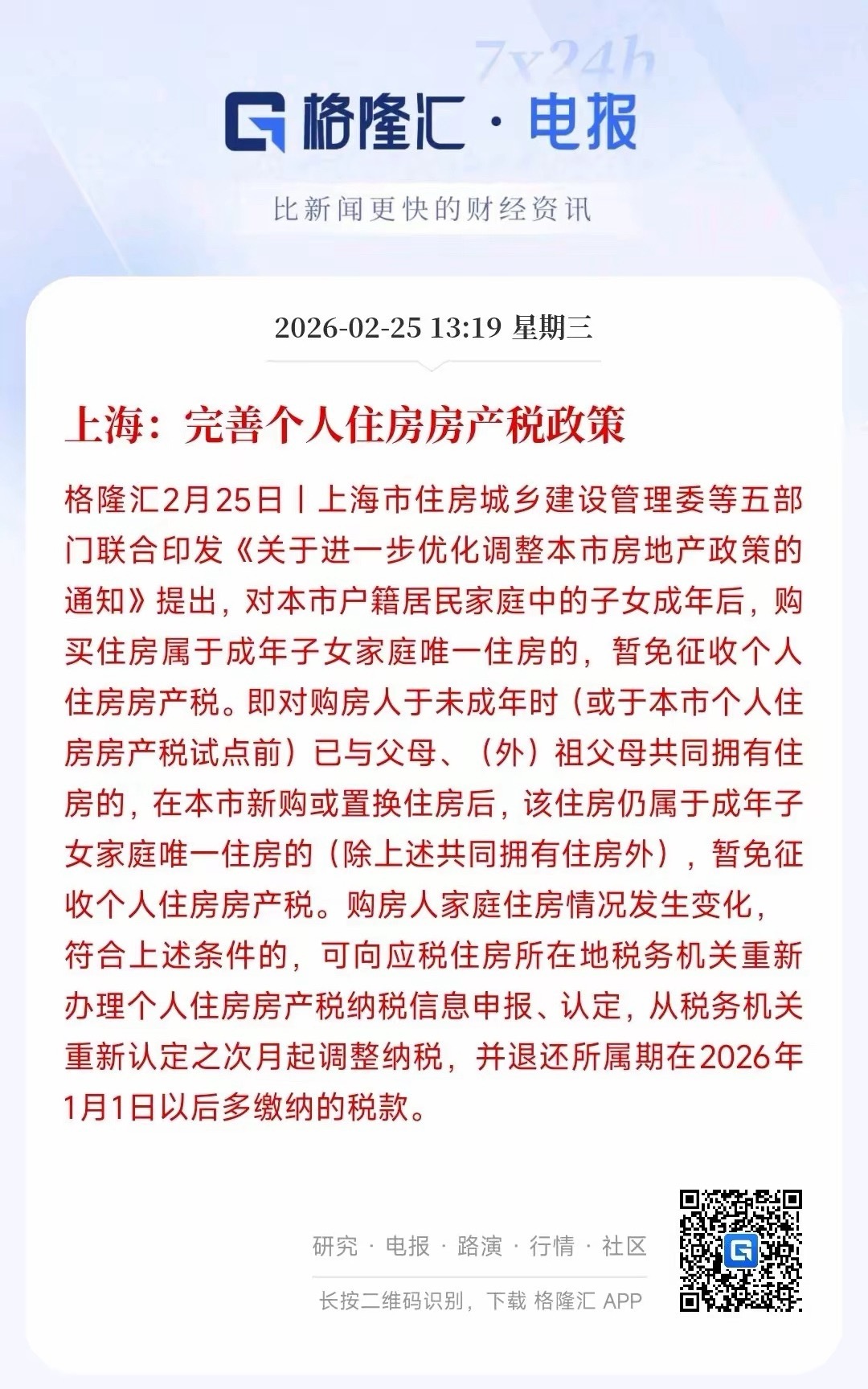 房地产板块利好来了,房产税新规出台上海规定:成年子女单独买房,只要是自己家庭唯一一套,就算之前跟爸妈共有过房子,也免交房产税。以前:房产证上有你名字(跟爸妈一起),长大自己买房,就算只买一套,也可能被算成“二套”,要交房产税。现在:成年后买的第一套房,是你小家庭唯一住房,直接免房产税。主要的目的就是减少房产税的征收,促进年轻人买房或者换房,增加房地产市场的活性,对于房地产市场来说就是一个政策的托举。现在的房地产市场正在回暖当中,其中政策的关系很大,从现在的情况看,后续还会有更多的房地产利好政策。
