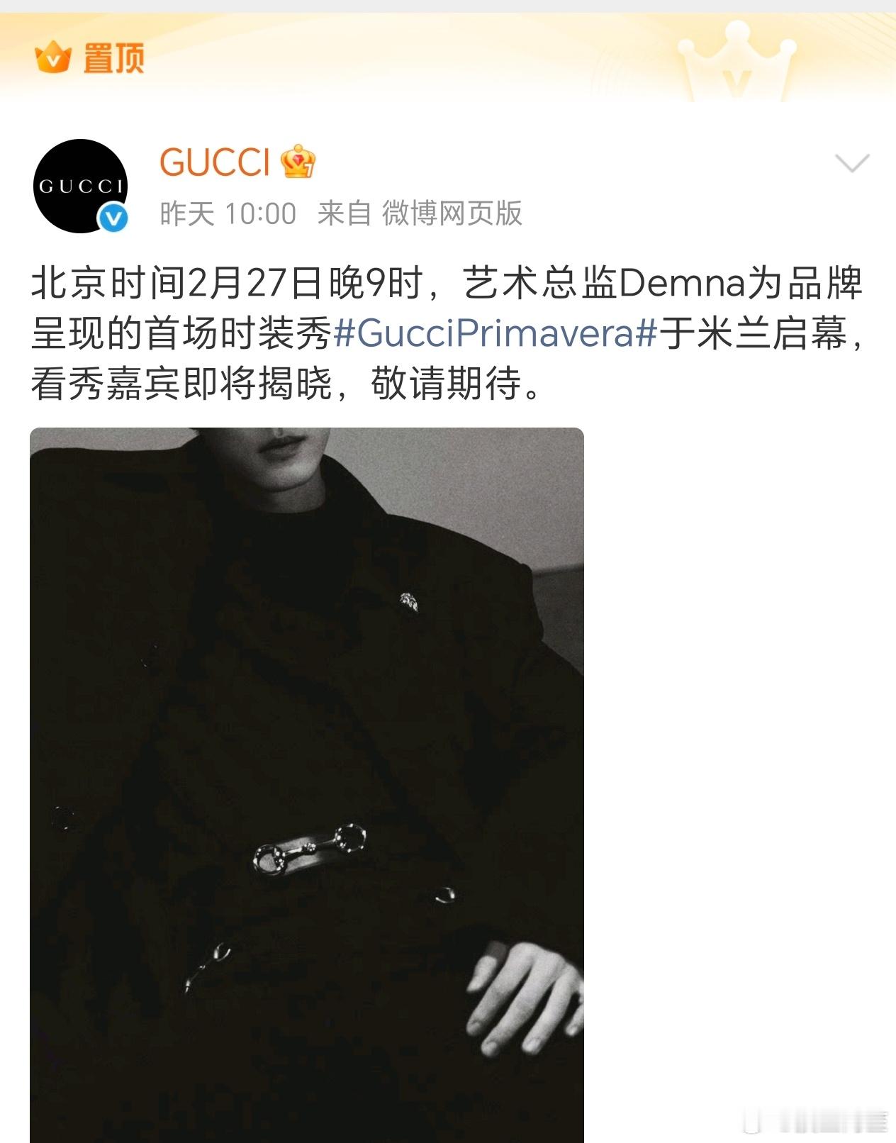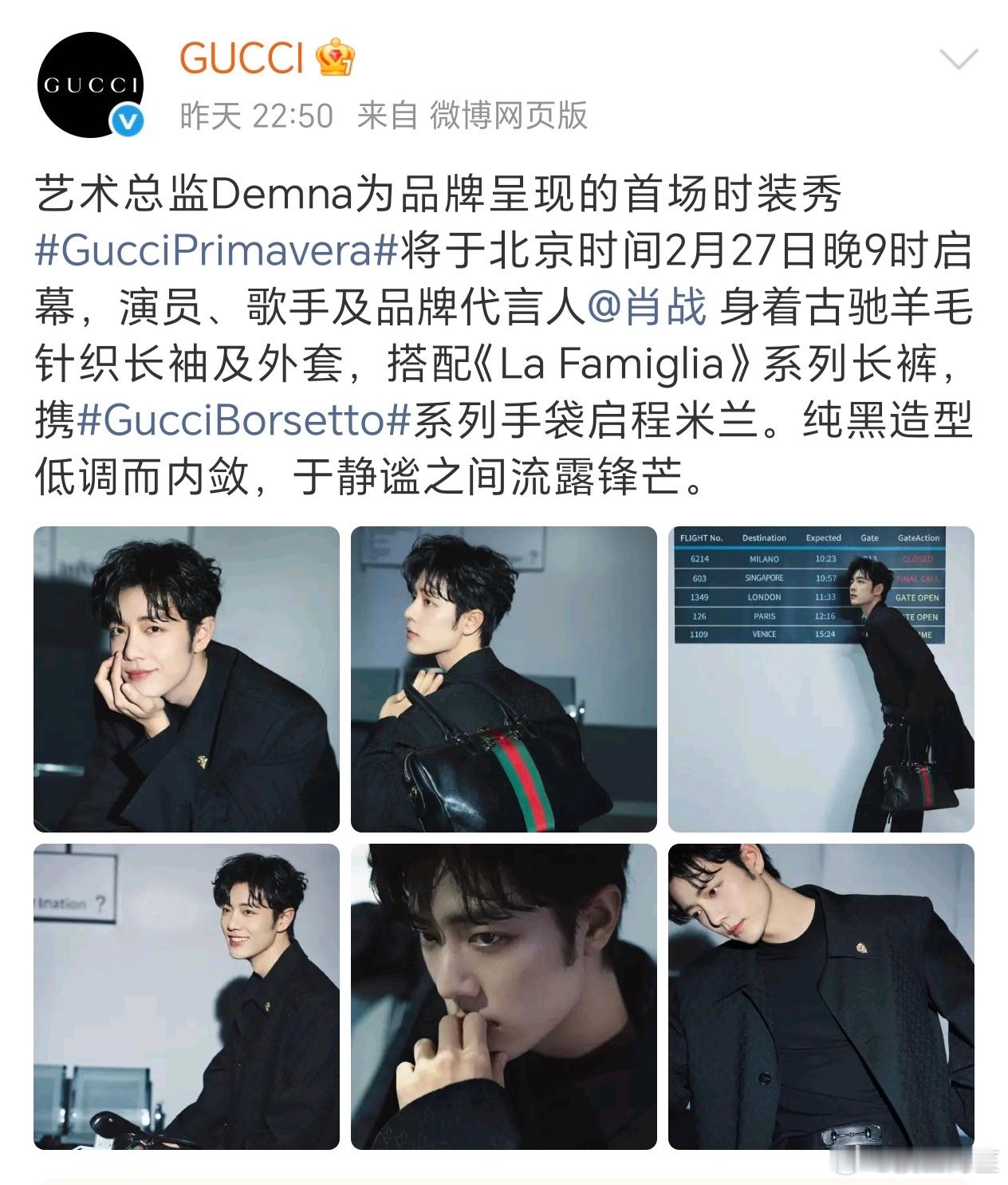 Gucci 这次米兰大秀外网官网发的第一个明星就是肖战,微博官博置顶和唯一发布的艺人也是肖战,就是这样的高奢影响力无人能敌GUCCI肖战