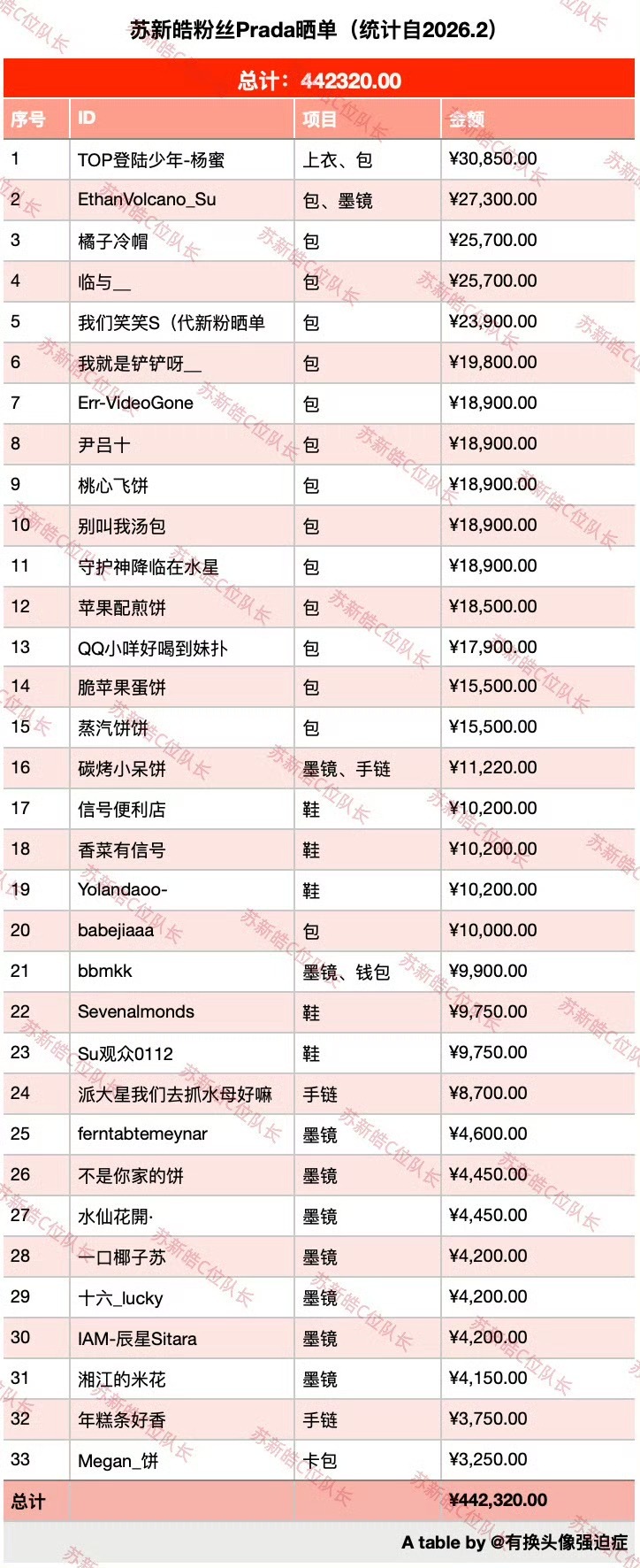tg:苏新皓粉丝2026米兰女装秀时装周Prada晒单,没有凑数的彩妆,晒单金额已达44w➕