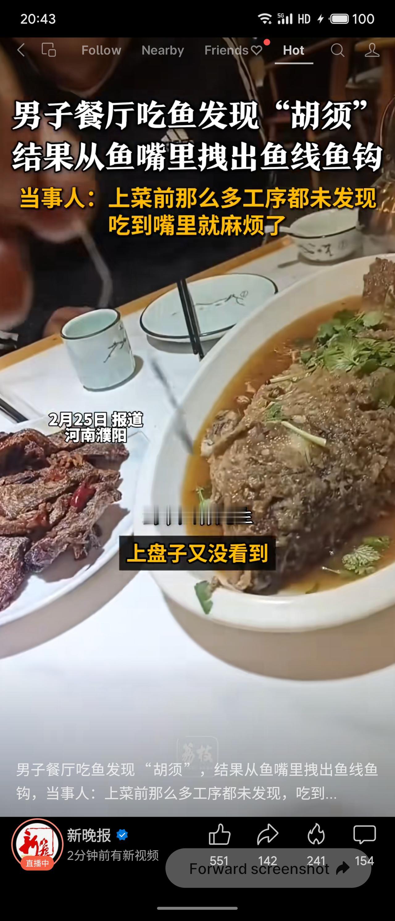 河南濮阳一男子在餐厅吃鱼时,发现鱼嘴有“胡须”,拉扯竟拽出鱼线和鱼钩。当事人质疑,上菜前经多道工序却无人发现,若吞下后果不堪设想。