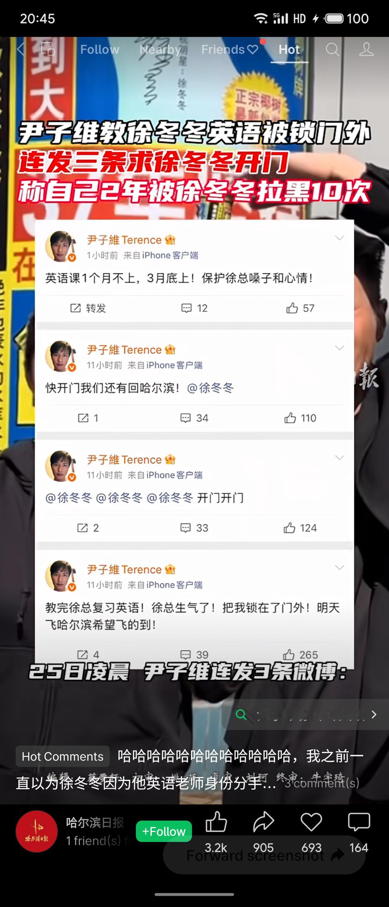 尹子维因教徐冬冬英语太严厉被锁门外,连发微博道歉求开门,称将调整风格,保护徐冬冬嗓子和心情。