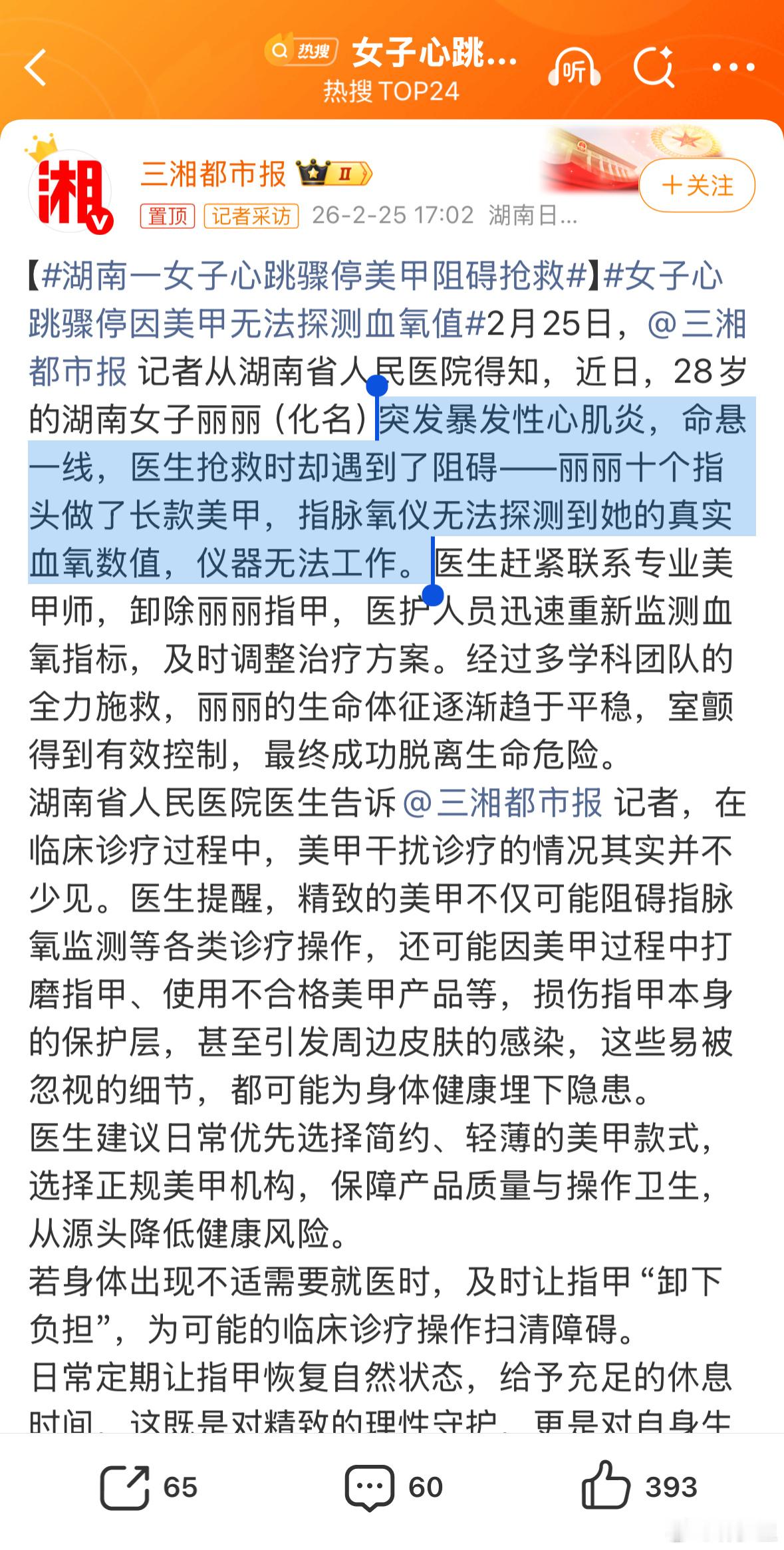女子心跳骤停因美甲无法探测血氧值这里的重点是“暴发性心肌炎”,这一般是由病毒感染引发的。