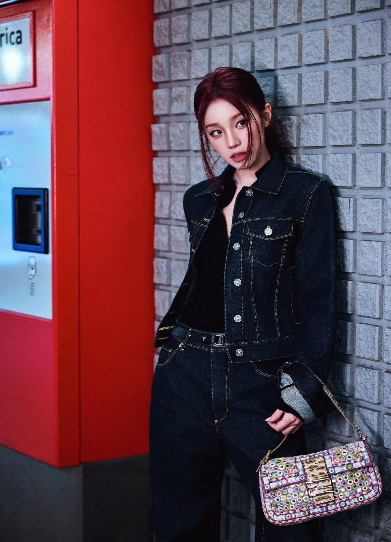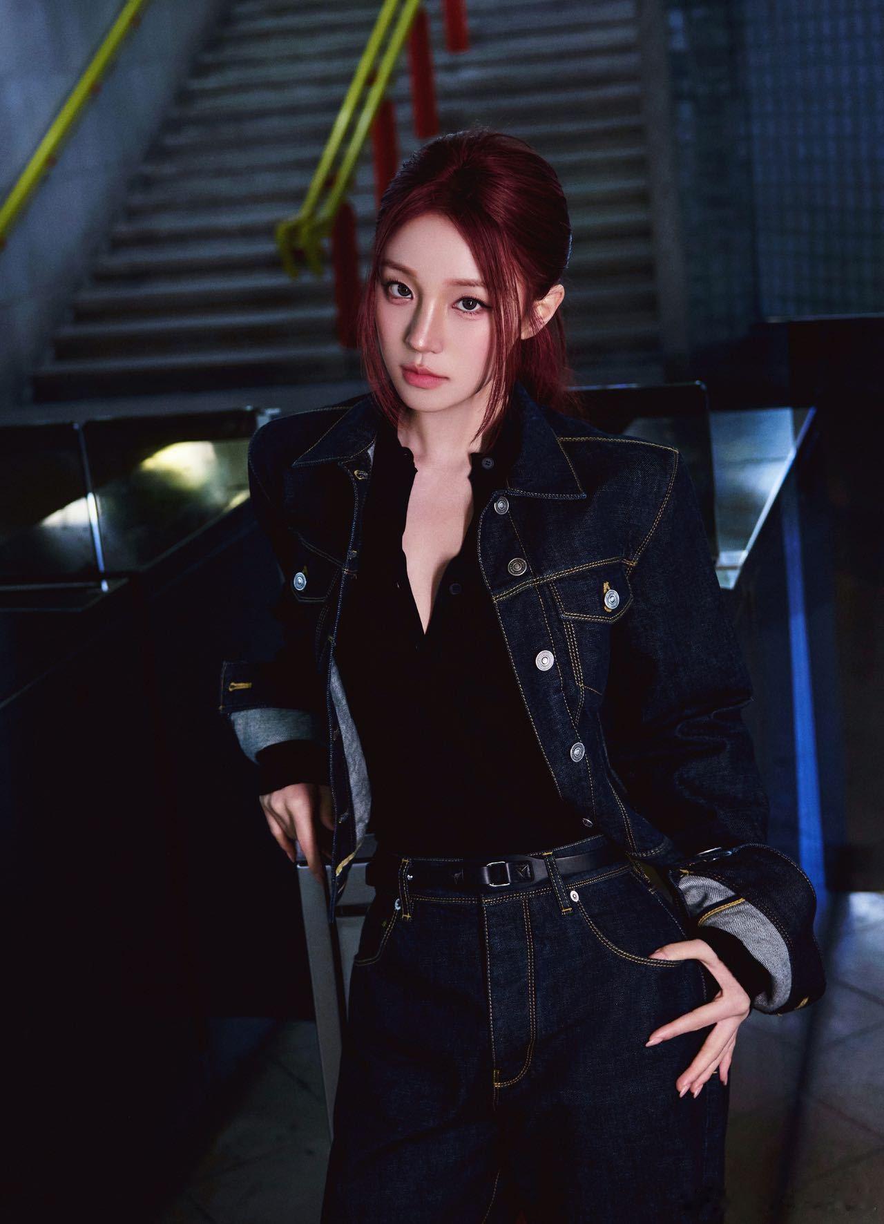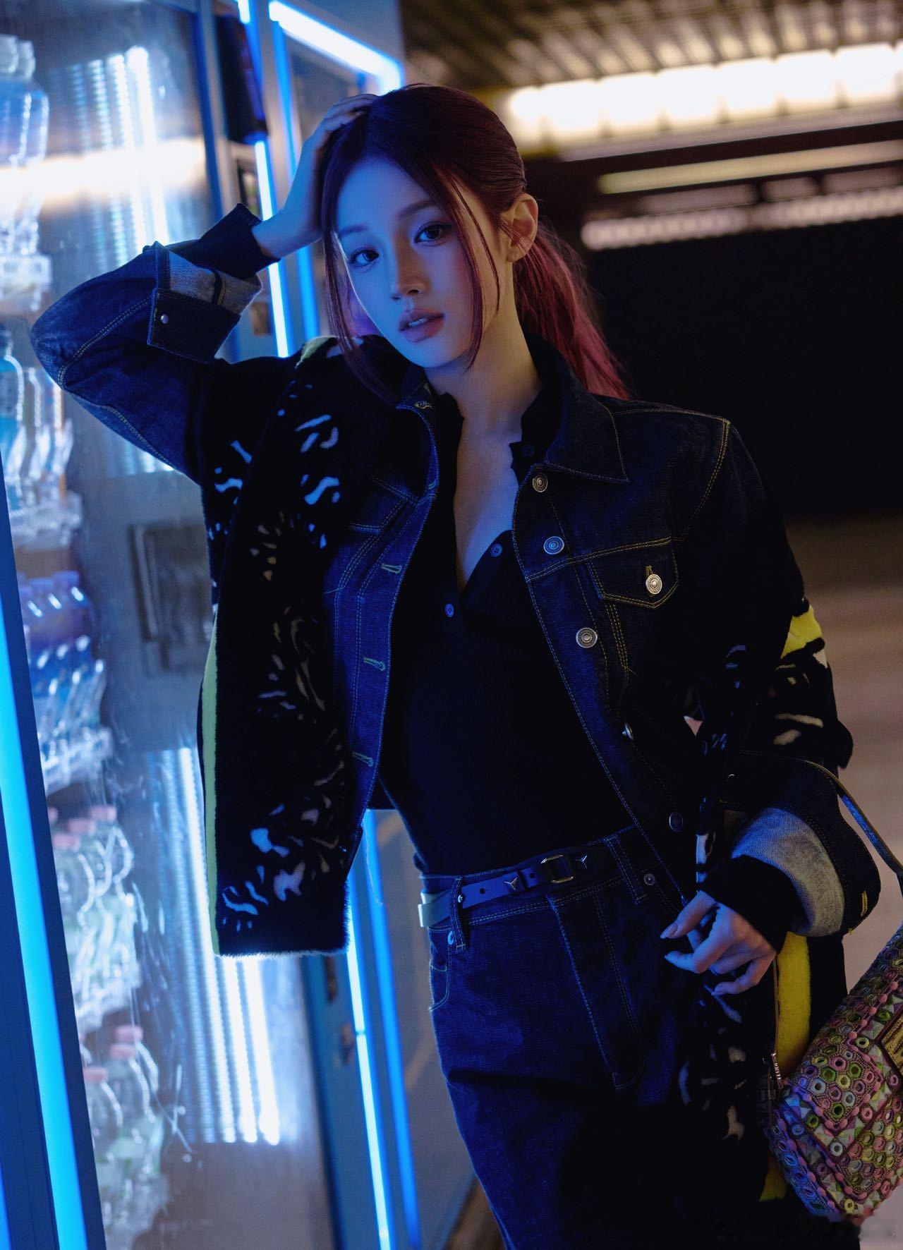 宋雨琦Fendi2026秋冬大秀造型,上身牛仔套装,红发马尾尽显利落时髦!酷女孩!!