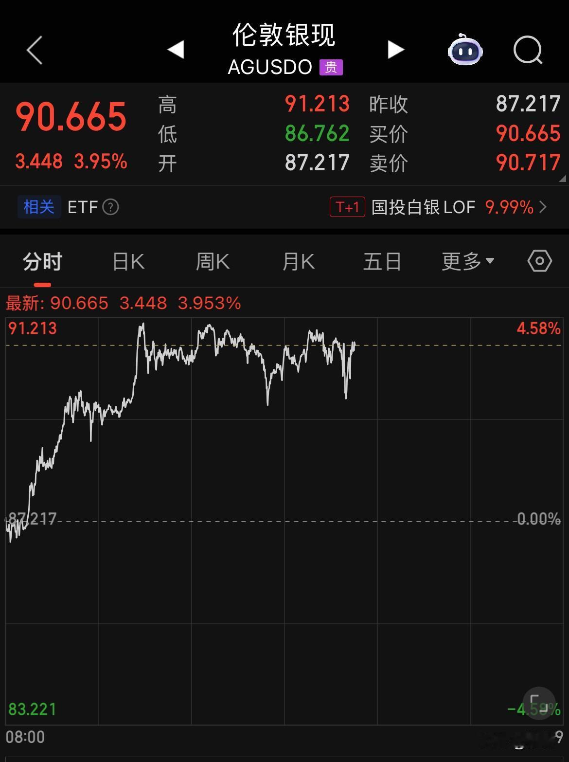 国投白银LOF今天又涨停了,而且溢价率由前一日的40%降到了35%,主要原因在于国际白银价格又站上了90美元/盎司的大关,单日涨幅4%。 关于白银的另一则消息更为炸裂:瑞士银行在第四季度财报中,它们执行了自1978年以来最大规模的单笔黄金转白银的资产重新配置。瑞士银行是世界上最保守的机构之一。它们不追逐潮流,不投机,也不进行冲动的资产重新配置。 瑞士银行的这一操作很是耐人寻味。 因为根本没有相关的报道和分析,如果这一操作确实是真实的,那么对于白银价格的想象空间将会更大、时间周期更长。