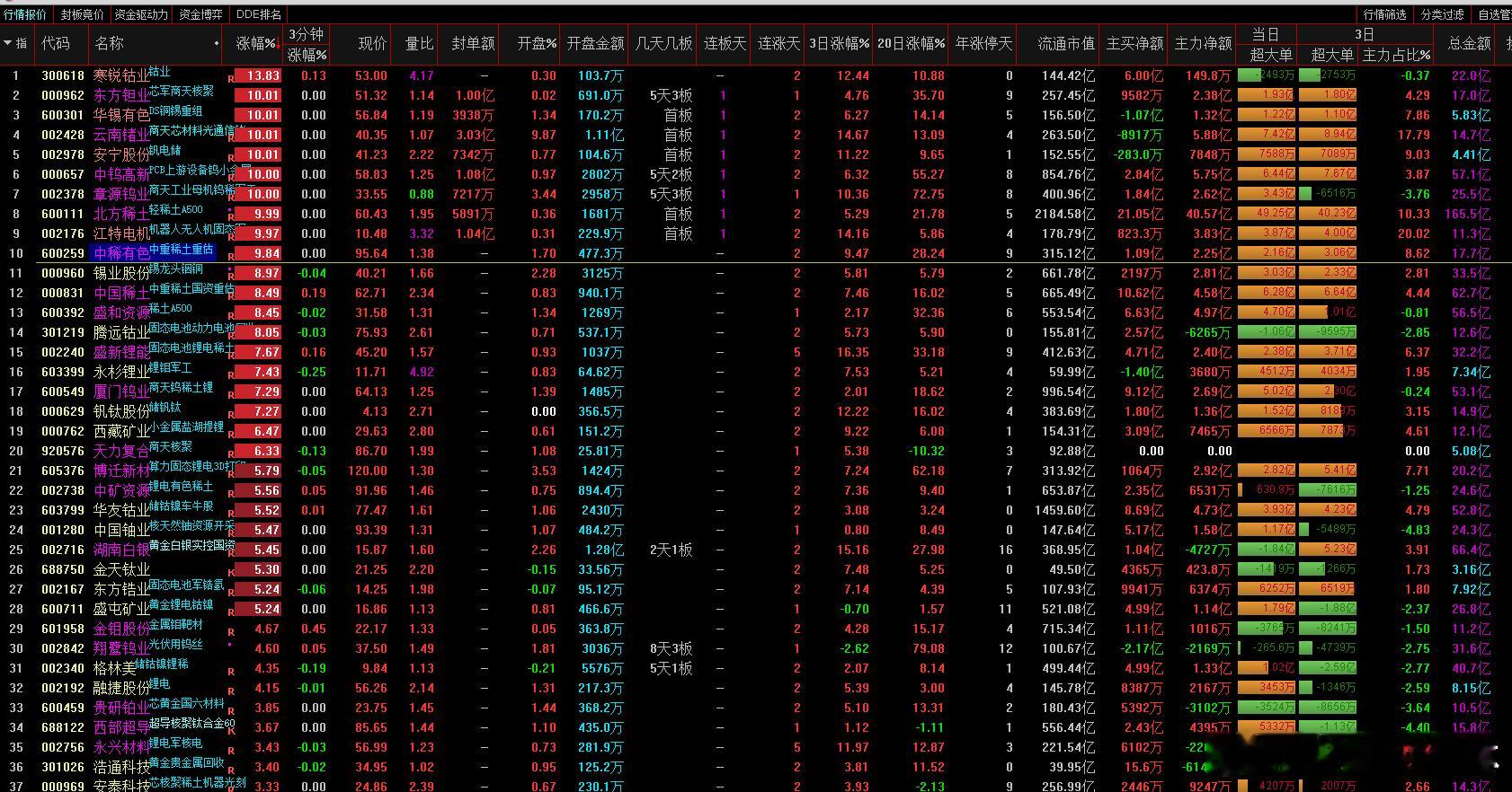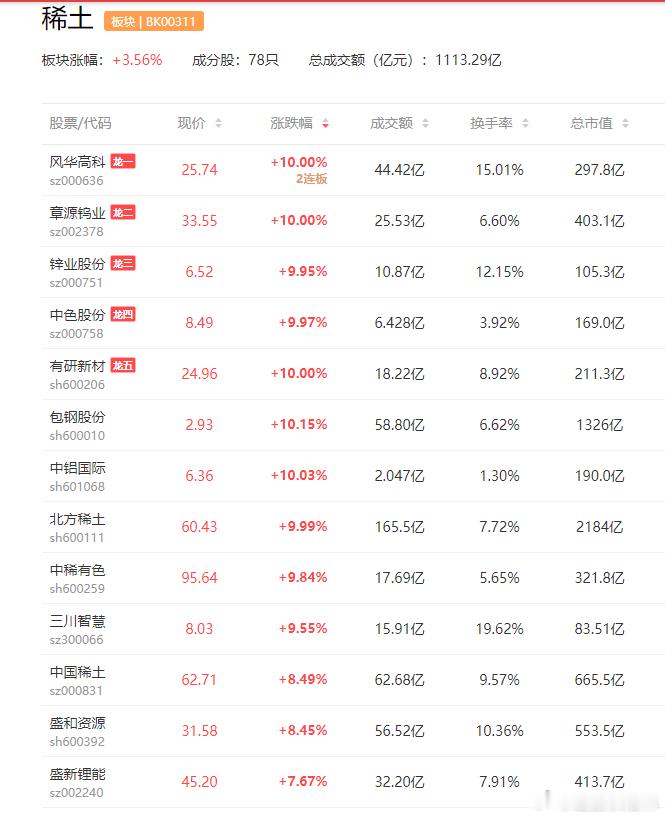1板:跃岭股份、云南锗业、中色股份、锌业股份、华锡有色、包钢股份、中铝国际、罗平锌电、东方钽业、有研新材、章源钨业、中钨高新、北方稀土