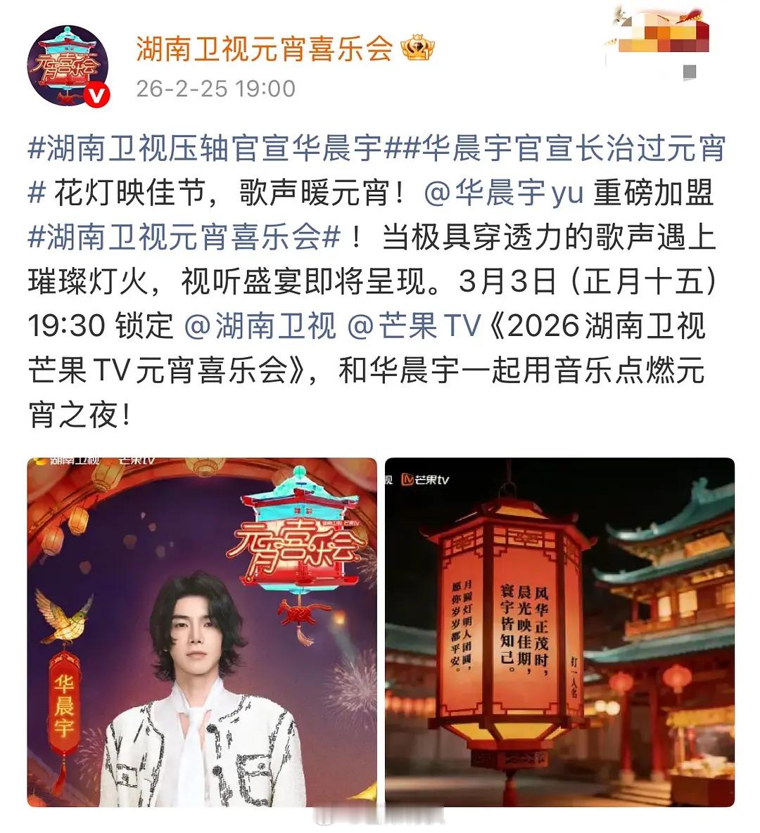 湖南卫视元宵晚会压轴官宣华晨宇