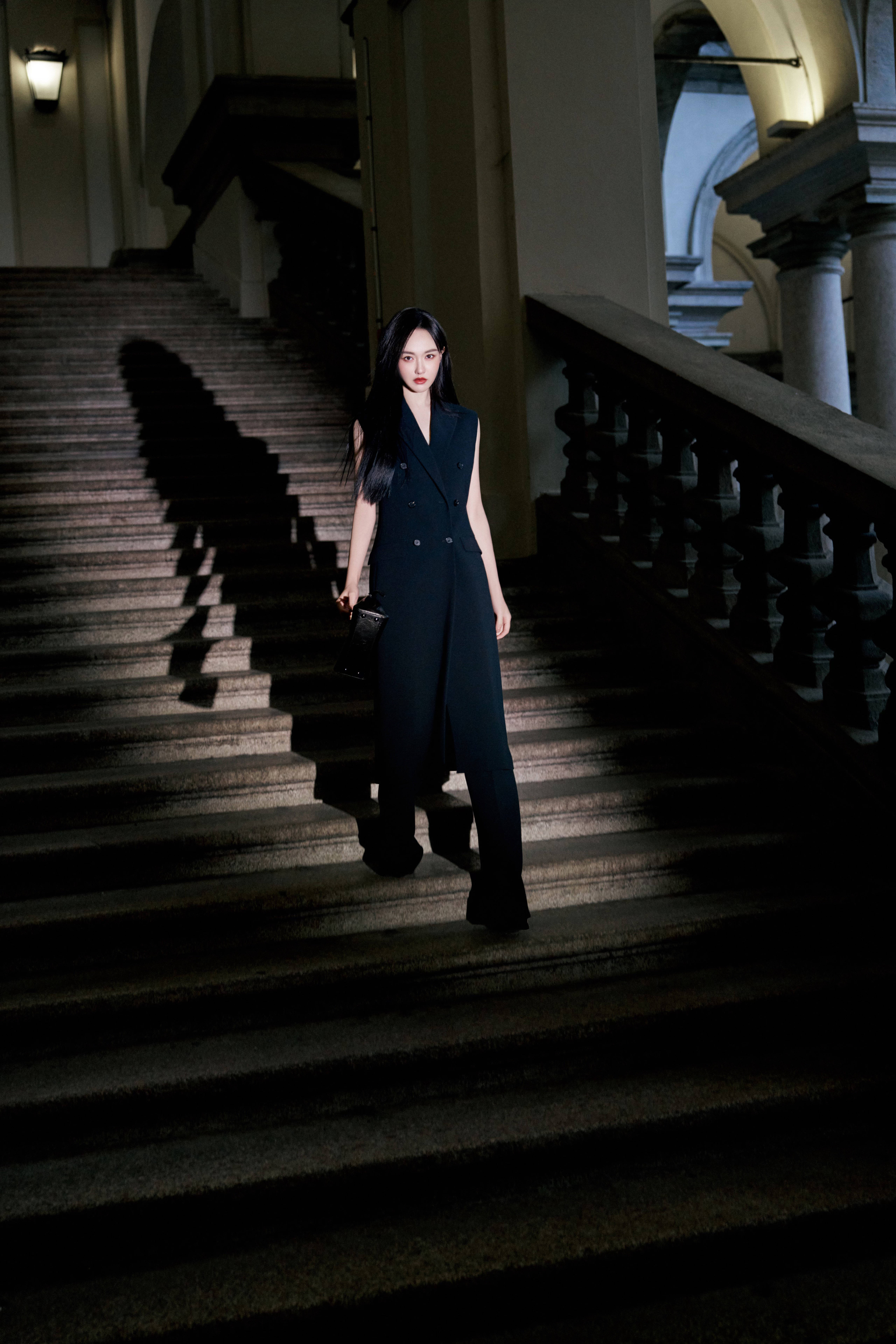 哇呜 ~ 唐嫣来啦 !首席创意官 Maria Grazia Chiuri 意义首秀 ,当家代表自然不会缺席 !唐嫣以一身利落 All Black 造型出镜 ,好久不见的黑长直 + 红唇点睛 ,绝杀米兰 !御姐上线 !