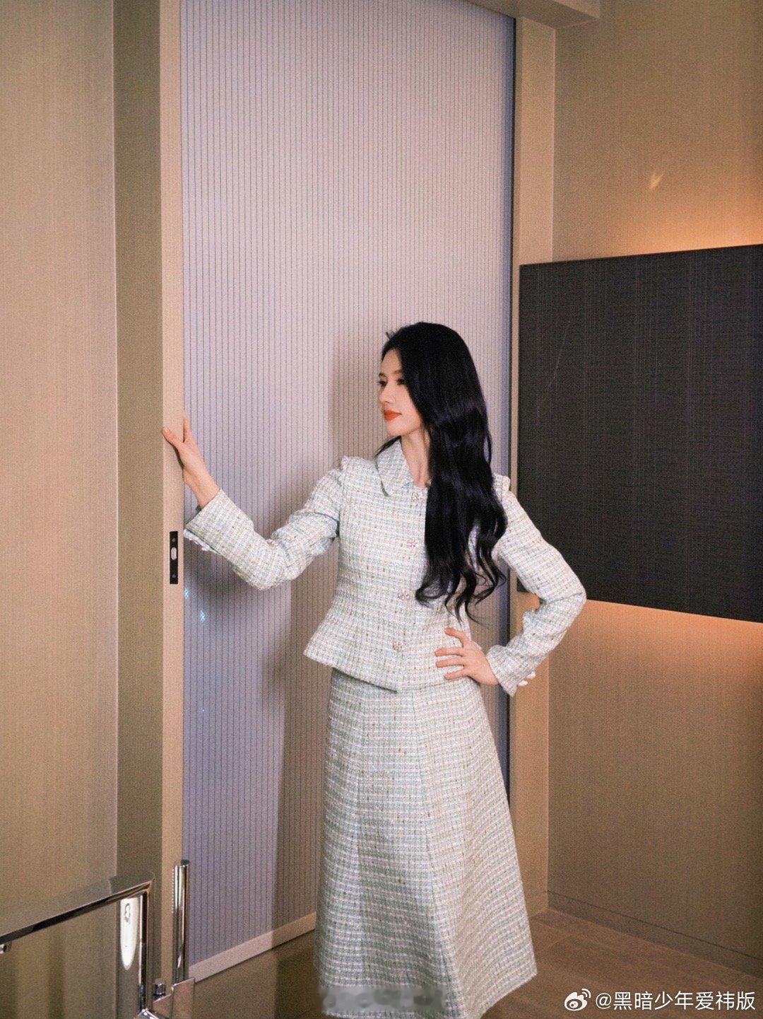 刘亦菲这条裤子挺养生,毕竟降温了肚脐眼必须护住啊