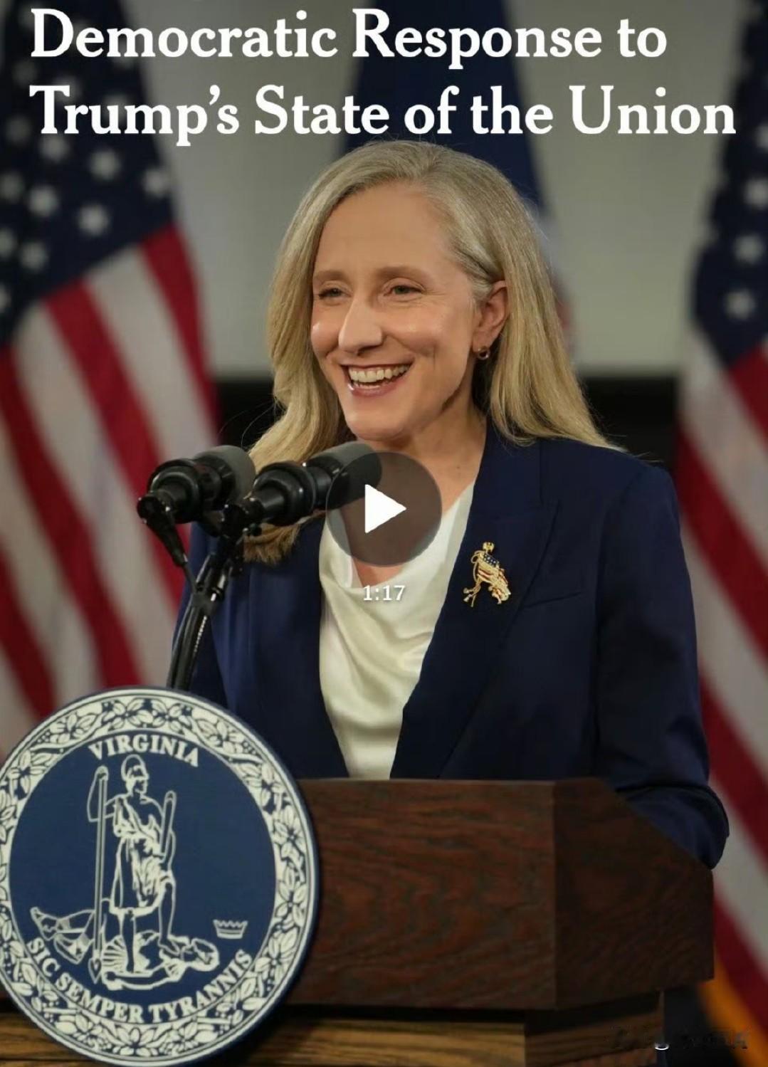 Trump国情咨文,形容美国是黄金时代、经济火爆,70%选民不同意,认为经济只是“还行”、或“不好” 民主党推出的反驳演讲(佛吉尼亚州长),重点强调他在说谎、普通人过得并不好 “他让物价更便宜了吗” “他是在为你工作吗” 答案是No,如果你是普通人
