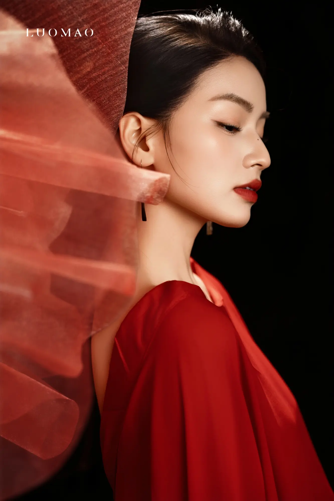 红底黑裙新中式|清冷感少女写真直接封神✨。修身黑裙的小镂空刚好戳中氛围...