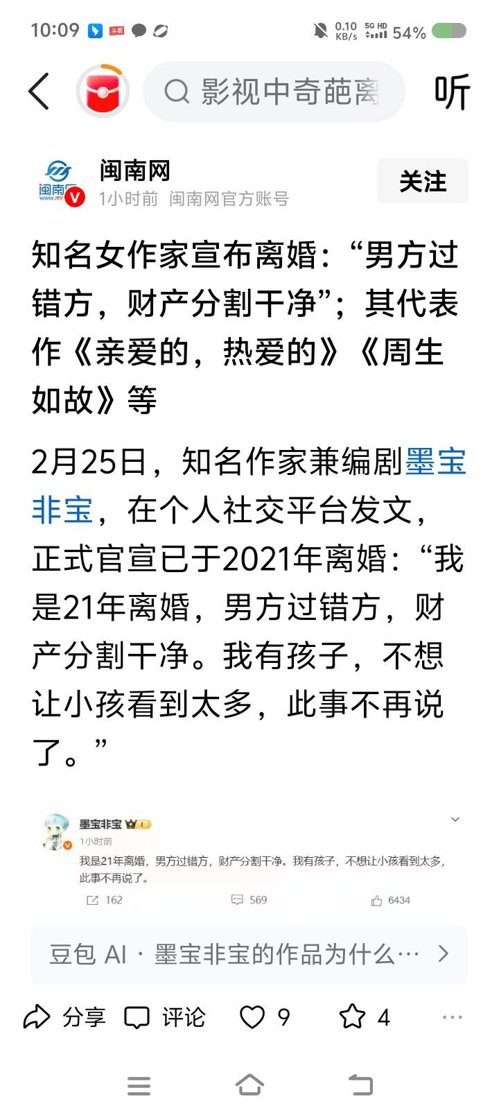 那些官宣结婚离婚的,什么心态?—— 据报道,某作家发文,几年前已离婚,男方为过错方。之前,有传闻。作家似乎对此回应。 点评: 结婚离婚,是个人的事。不要闹得人尽皆知。有些人,也不要传播别人的不实消息。 有那闲心闲力,上班前绕地球跑20圈。