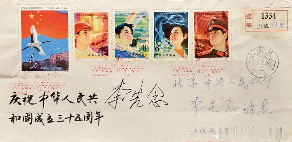 1984年10月1日国庆35周年国家新主席李先念亲笔签名首日封历史影像