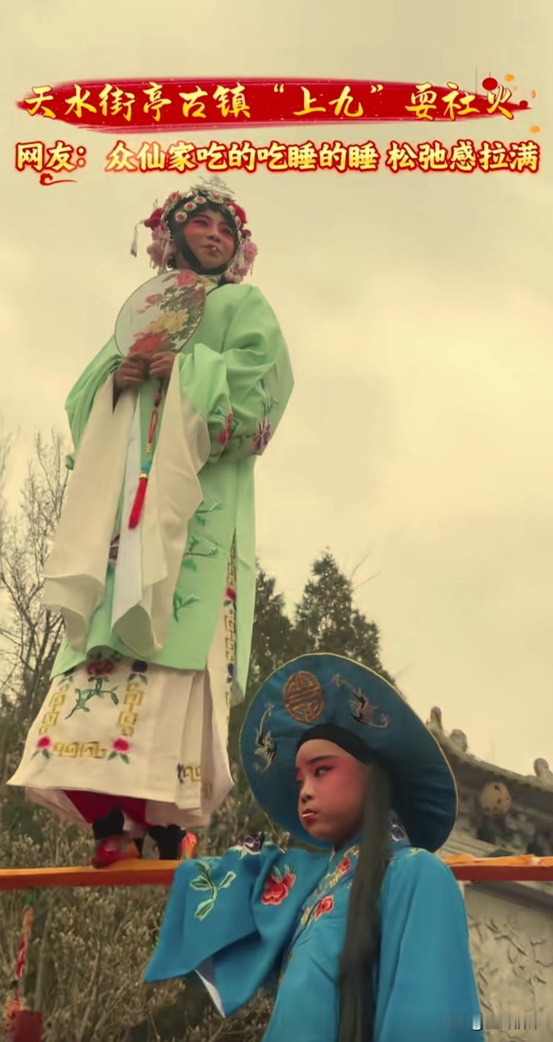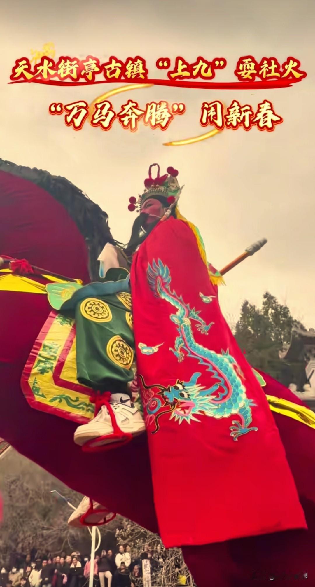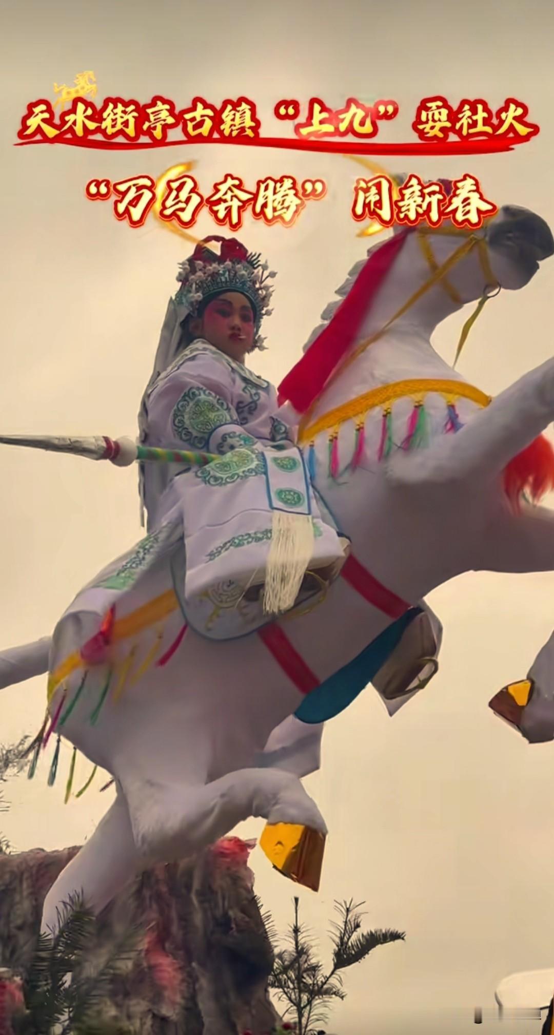天水社火有多硬核?非遗高台凌空而立,歼-35直接“出征”! 中国社火看西北,西北社火看甘肃,而甘肃最绝的年味,藏在天水街亭古镇的“上九”里!“上九”寓意长久,在这片伏羲女娲的诞生地,每年正月初九都是一场全民参与的文化盛宴。 更厚重的是,这里正是三国时期马谡失街亭的古战场,是诸葛亮六出祁山的北伐要道,更是名将姜维的故里。2026年农历正月初九,这场传承千年的民俗狂欢,就在这片金戈铁马的土地上燃爆三国古街。 十里八乡的村民自发组队,三十余支社火队浩浩荡荡,把古街变成了欢乐的海洋。镜头里的每一幕,都藏着西北非遗的极致浪漫: ✅ 梦回三国,马社火扬威:身着绣金戏服、背插靠旗的“小将”端坐彩马之上,威风凛凛。街亭本就是古战场,此刻仿佛蜀军铁骑巡游,千年前的军旅雄风瞬间重现。 ✅ 非遗绝技,高台凌空:数米高的铁芯之上,孩童扮相的人物凌空而立,衣袂飘飘,这就是麦积高台的“高、悬、绝、妙”,尽显民间匠人的顶级智慧。 ✅ 硬核破圈,歼-35出战:最让人惊喜的是,传统社火里竟出现了“歼-35战机”模型!逼真造型缓缓驶过,传统年味与现代国防科技碰撞,这波“老非遗玩出新花样”,必须给满分! 锣鼓喧天,唢呐齐鸣。老人们在回味乡愁,年轻人在打卡拍照,孩子们追着队伍奔跑。这场社火早已超越娱乐本身,它是祈福,是期盼,是邻里间的温情,更是流淌在陇原儿女血脉中的文化基因。 这样兼具历史底蕴与烟火气息的年味,才叫地道!你被天水街亭社火惊艳到了吗? 马年社火 甘肃人社火 陇城社火 天水古城年货节