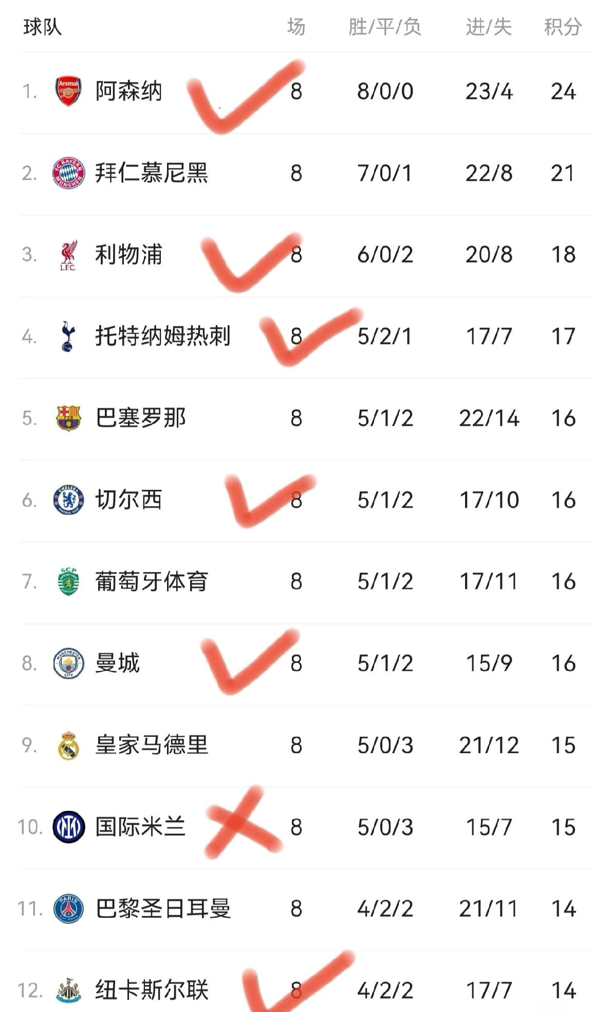 欧冠历史性时刻!英超六队全员挺进16强啦!阿森纳、利物浦、热刺、切尔西、曼城凭借联赛阶段前八的排名直接晋级,阿森纳更是8战全胜超惊艳。纽卡斯尔联也不逊色,附加赛两回合9-3强势淘汰对手晋级。这是欧冠历史上首次单一联赛所有参赛队都进淘汰赛,英超统治力拉满,相比之下,意甲球队却面临全军覆没的尴尬,真是几家欢喜几家愁啊。