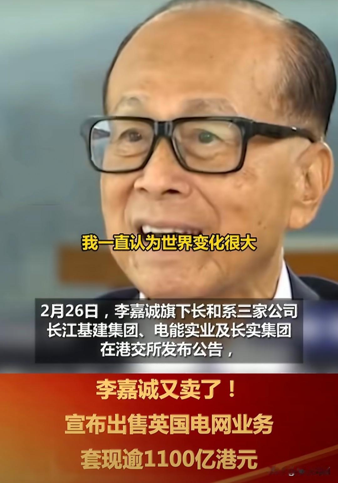 巴拿马这事以后,李嘉诚李嘉诚 也开始变现海外资产了,长和和长江基建卖出收购多年的的英国电网业务,套现逾1100亿港元