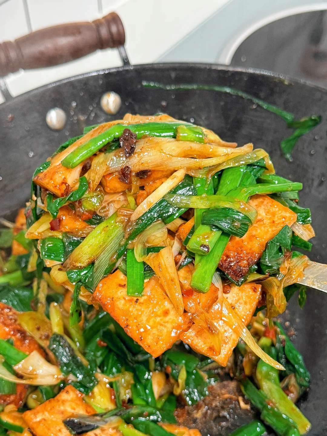 谁懂啊?蒜苗香煎豆腐吃一次爱一次!