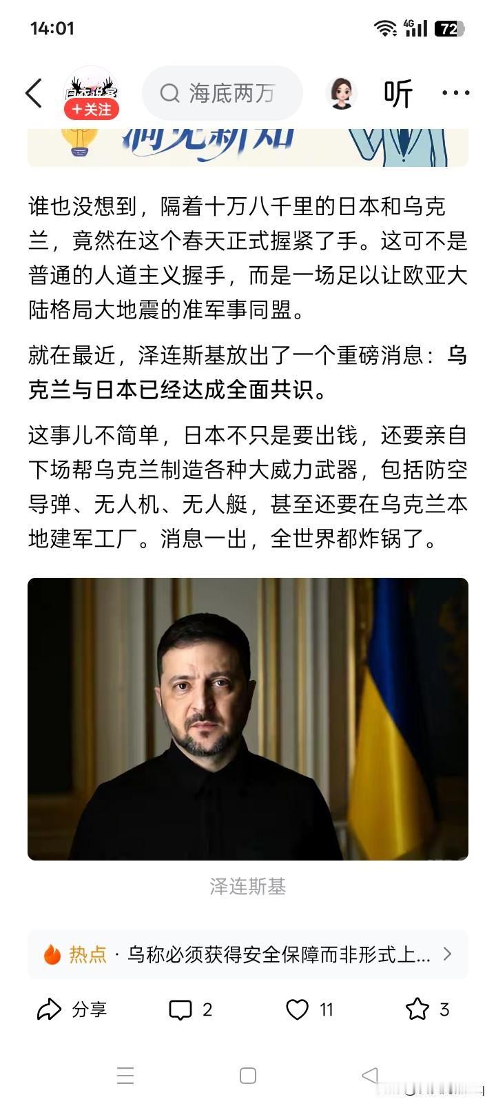 事不大,影响很大? 现在的这个时候,乌克兰总统泽连斯基可能在心里默默的想,想跟乌克兰干,等着好看的吧! 由英国出资,乌克兰出技术,英乌联合在英国境内建设的大型无人机制造企业,今天正式建成开工投产了。这个企业现在预计年产8-10万架先进性能的无人机,以后年产还要提高到50万架。该企业制造的无人机,不仅仅是向乌克兰战场上提供,还要向欧洲国家出口。 另外网络上有消息,泽连斯基好像已经与日本首相高市早苗达成了共识,日本在向乌克兰提供资金的同时,似乎还要帮助乌克兰制造防空导弹、无人艇和无人机,并且,还可能要在乌克兰建立军事工厂。