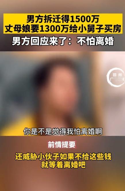 2020年广东,一男子因拆迁获得1500万巨款,妻子竟提出拿1300万给小舅子买房结婚,遭拒后就威胁离婚。男子气愤回应:“这是我爹妈的钱,和你家有啥关系?”谁料,妻子直接将他告上法庭,要求离婚并分割1500万拆迁款。法院判了! 2020 年的广东,城市更新的脚步走进了不少老旧社区,原本平淡度日的一户人家,因为家中老宅迎来拆迁,生活突然被一笔巨额补偿款打乱了节奏。 谁也没想到,本该让一家人日子越过越好的喜事,最后却演变成夫妻对簿公堂的闹剧,甚至牵扯出离婚与财产分割的纷争,让原本和睦的家庭关系降到了冰点。 这笔让家庭矛盾爆发的钱,是男子父母名下老宅的拆迁补偿款,总计 1500 万元。 这套老房子是男子父母年轻时辛苦打拼置办下的房产,在男子结婚前就已经登记在父母名下,承载着一家人几十年的生活记忆,从产权归属到实际使用,都和夫妻二人的婚后共同财产没有任何关联。 随着当地城市改造项目推进,老房子被纳入拆迁范围,经过产权核实、面积核算、政策匹配等一系列流程,最终确定的 1500 万补偿款,是对父母自有房产的价值补偿,款项的归属权从始至终都清晰指向男子的父母。 拆迁款到位的消息传开后,男子的妻子和娘家最先坐不住了。在她们看来,家里突然拿到这么一大笔钱,理应帮衬娘家解决最棘手的难题。 妻子的弟弟到了适婚年龄,在当地结婚买房是硬性条件,高昂的房价让娘家一直犯愁,这笔拆迁款恰好成了她们眼中的 “救命钱”。 一开始,妻子只是旁敲侧击地和男子商量,希望能拿出一部分钱帮弟弟安家,随着沟通深入,娘家的态度越来越强硬,最后直接由丈母娘出面,提出了一个让男子无法接受的要求 —— 拿出 1300 万给小舅子全款买房结婚。 这个要求近乎苛刻,1500 万的补偿款,几乎要被拿走绝大部分,只给男子一家留下零头。 妻子完全站在娘家的立场,不断给男子施压,反复强调弟弟结婚的紧迫性,认为作为姐夫出资买房是天经地义的事,甚至觉得男子不肯出钱就是不顾及亲情、没有担当。 面对妻子和娘家的轮番劝说与指责,男子始终保持清醒,他清楚这笔钱的来历和归属,没有丝毫退让的想法。 男子当场明确拒绝了这个无理要求,他直白地告诉妻子和丈母娘,这笔拆迁款是父母的个人财产,是老人一辈子的积蓄和心血。 既不是夫妻二人的共同收入,也和妻子的娘家没有任何关系,自己没有权利擅自处置父母的钱,更不可能拿出绝大部分去满足娘家的要求。 男子的拒绝彻底激怒了妻子,原本温和的沟通瞬间变成激烈的争吵,妻子见软的行不通,直接拿出离婚作为威胁,放话只要男子不肯出钱,就立刻结束婚姻关系。 男子本以为妻子只是一时气话,是被娘家怂恿后的冲动之举,可妻子的态度远比他想象的坚决。 日复一日的争吵充斥着家庭生活,家里再也没有往日的平静,妻子始终把拿钱和离婚绑定在一起,试图逼迫男子妥协。 男子又气愤又无奈,他坚守自己的底线,回应称就算离婚,也不会动父母的拆迁款,这笔钱的归属不会因为婚姻关系而改变。 僵持数月后,妻子见男子始终不肯松口,真的将离婚的想法付诸行动。 她直接向法院提起离婚诉讼,不仅要求解除和男子的婚姻关系,还提出了一个更让人意外的诉求。 主张分割这 1500 万拆迁款,认为这笔钱是在婚姻存续期间取得,应当算作夫妻共同财产,自己有权分得一半。 一纸诉状,让这场家庭内部的纷争,彻底走上了法庭裁决的道路。 法院在审理过程中,对所有证据进行了逐一核实,理清了案件的核心事实。法官明确,夫妻共同财产的认定有清晰的法律边界,并非婚内取得的所有财产都属于双方共有。 本案中的拆迁补偿款,基于一方父母的婚前自有房产产生,属于父母的个人财产,与子女的婚姻家庭无关,男子的妻子并非房屋产权人,也没有任何证据证明该款项是父母对夫妻双方的赠与,因此无权主张分割。 一审法院最终作出判决,驳回女方分割 1500 万拆迁款的诉讼请求,只对两人婚姻关系解除、其他婚后小额共同财产进行了处理。 二审法院受理后,对一审认定的事实、完整证据链和法律适用进行了全面复核,确认一审判决事实清楚、证据确凿、法律适用无误,女方的上诉请求没有任何事实和法律依据,最终作出终审判决:驳回上诉,维持原判。 无论亲情往来还是婚姻关系,都不能成为侵占他人合法财产的理由,法律的公平公正,始终是守护公民财产权益的坚实底线。 对于这件事,您有什么想说的吗?欢迎评论区留言讨论。 信源:郑州广电全媒2020-08-30——《男子拆迁得1500万岳母要1300万 只为给儿子结婚买房,男方回应》