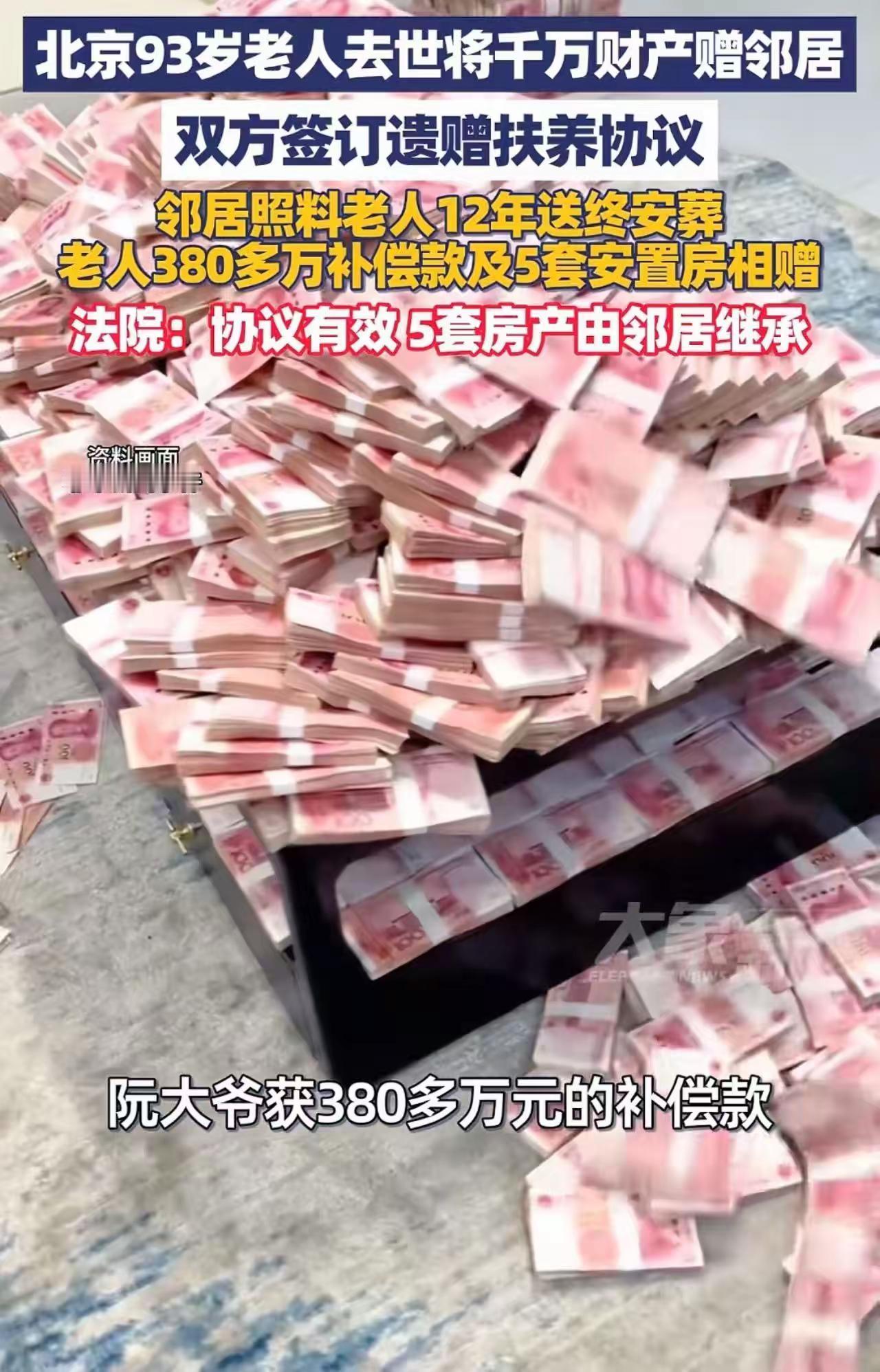 “吃绝户”反被将一军:北京93岁老人的遗嘱,撕开了多少亲戚的遮羞布! “到嘴的肥肉,居然飞了!” 北京,一位93岁的老人去世,身后留下价值千万的5套房产。亲妹妹和四个哥哥家的孩子们,眼睛都红了,盘算着如何“合理合法”地继承这笔横财。毕竟,老人无儿无女,在他们看来,这财产,除了自家人,还能落到外人手里不成? 结果,一纸遗嘱,像一记响亮的耳光,抽得他们目瞪口呆。老人把千万财产,全给了邻居! 这剧情,比电视剧还精彩。亲兄妹输给了“外人”?愤怒、不解、质疑,他们第一时间跳出来,大喊“不合理”!可法院一锤定音:协议有效,房产归邻居! 评论区瞬间沸腾了:“干得漂亮!”“这样的北京大爷还有吗?给我来一打!” 可我们在拍手称快的同时,有没有想过一个问题:到底是什么,让一个老人在生命的最后,宁愿把毕生积蓄送给“外人”,也不愿留给血脉相连的亲人? 这才是这件事背后,最值得我们深思的人性拷问。 别急着骂那些亲戚“活该”。我们先来看看,这个“邻居”做了什么。 报道里说得很清楚,老人年事已高,生活不便。这些年,是这位邻居,像亲人一样,每天上门照顾,买菜做饭,嘘寒问暖,陪老人聊天解闷。老人病了,是邻居送去医院,跑前跑后;老人寂寞了,是邻居守在一旁,端茶倒水。 而那些所谓的“亲人”呢?他们在哪里? 他们也许住得不远,也许经济宽裕,但在老人最需要陪伴的漫长岁月里,他们集体“失明”了。他们忙着工作,忙着应酬,忙着经营自己的小家庭。老人,成了他们通讯录里偶尔想起的名字,成了逢年过节一个匆匆的电话,甚至,成了心里默默惦记着的“那笔遗产”。 他们不是不知道老人的存在,他们只是在等。等老人“走”的那一刻,然后以“血浓于水”的名义,体面地出现,拿走本该属于“他们”的一切。这就是民间常说的——“吃绝户”。 多么精明的算计!多么冷酷的耐心! 他们把亲情当成了一场投资,前期不投入任何情感成本,只等着最后收割红利。他们以为,血缘就是最硬的护身符,无论自己多么“缺席”,财产终究跑不掉。 可他们忘了,人心是肉长的。老人虽然年迈,但心里跟明镜似的。谁是虚情假意,谁是真心的陪伴,他比谁都清楚。 邻居图他钱吗?如果图钱,何必等到老人93岁?十几年如一日的照料,那是多少个日夜的付出,是用金钱无法衡量的真情。 老人送邻居财产,送的不是钱,是感恩,是对这份超越血缘的人间温暖的最后回馈。他用自己的方式,给那些“精明”的亲戚上了最后一课:亲情,不是遗产的继承权,而是生前的一碗热饭、一句问候。 这件事,撕开了多少家庭虚伪的遮羞布? 多少“远亲”,真的不如“近邻”?多少“血缘”,输给了“真情”? 别总想着“吃绝户”,算计那点家产。老人不傻,法官不瞎,老天更不长眼。真正的财富,从来不是房子和钞票,而是你真心付出的爱,和在你需要时,能握住你的那双手。 大爷走了,但他留下的这记“耳光”,应该打醒很多人。