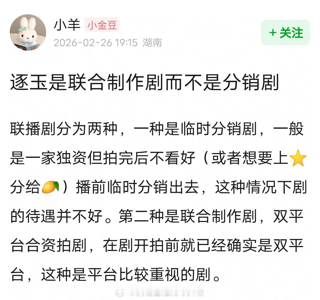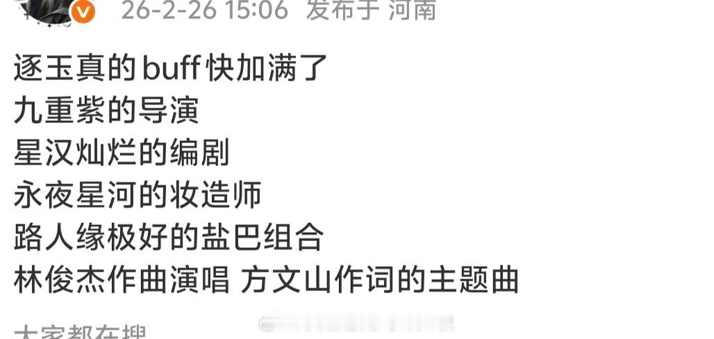 网友说张凌赫田曦薇《逐玉》是双平台联合制作剧,非分销剧,各方面待遇拉满。腾讯提前预热给固屏、林俊杰作曲演唱+方文山作词的主题曲、九重紫导演+星河灿烂编剧+永夜星河妆造+95双颜霸。业内很好看啊,逐玉这波必爆了吧?张凌赫田曦薇逐玉相拥海报 林俊杰作曲方文山作词 逐玉请来了林俊杰唱ost
