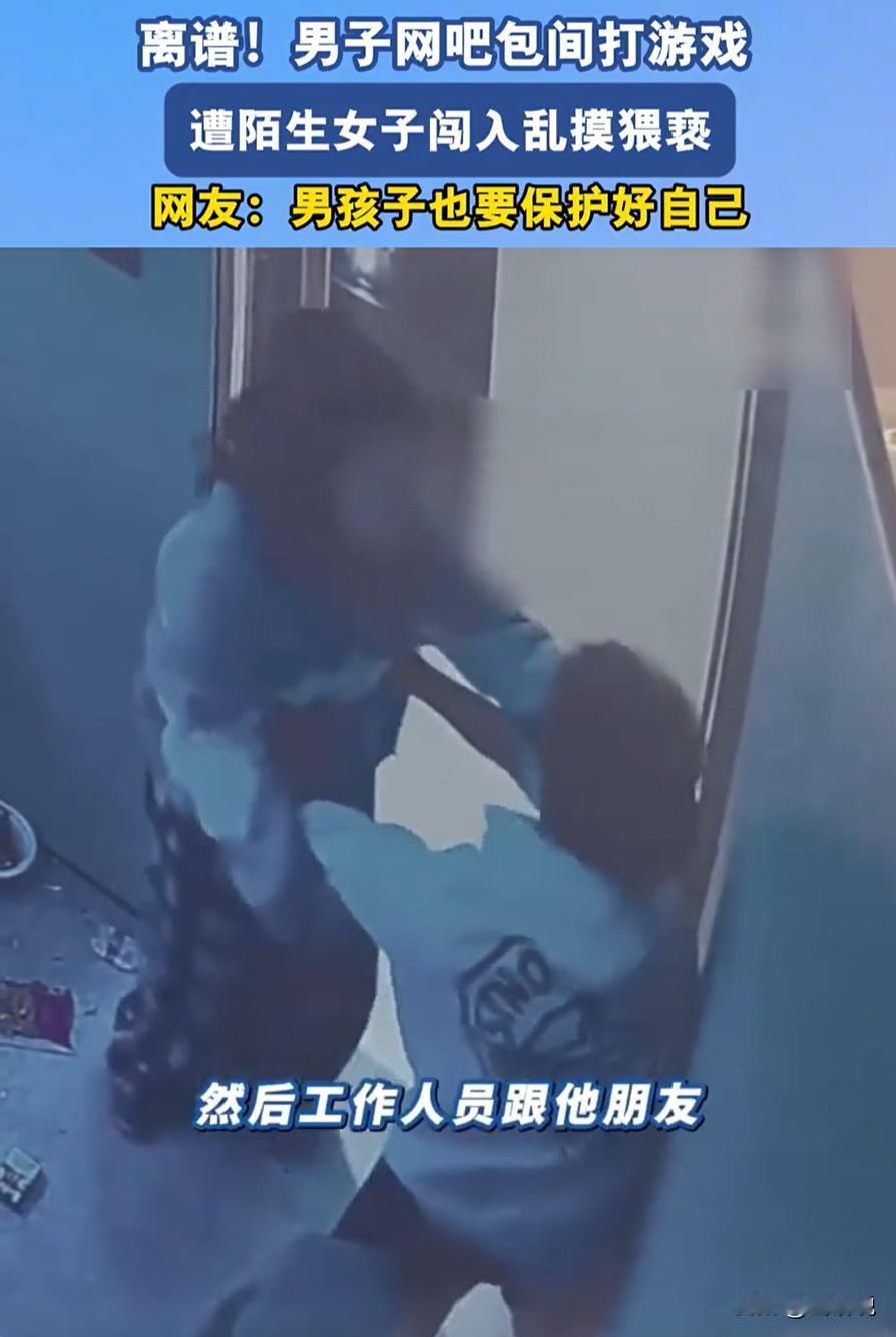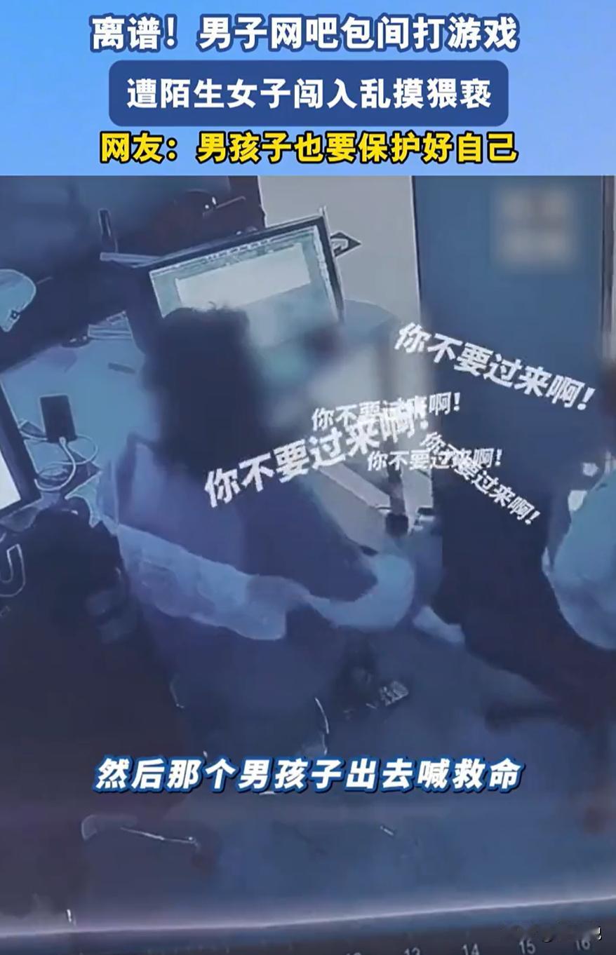 倒反天罡!湖南岳阳,两名男孩在网吧包厢上网,突然一名陌生女子走进来,两人都以为是对方的朋友,结果下一秒女子就脱下外裤,对着男孩乱摸,就连网吧工作人员都以为他们认识,后来发现不对劲才连忙制止。网友:事出反常必有妖 监控显示,女子推开包厢门,径直走向一个正在专心打游戏的小伙子,上手就乱摸。这小伙子吓得差点没从椅子上蹦起来,一边躲一边喊救命,拼命挣扎说我不认识她。可这女孩就跟听不见似的,死死拽着不撒手,甚至还想往他身上蹭。 说来也怪,当时包厢里还有另一个男生在打游戏,从头到尾连头都没回一下,眼里好像只有电脑屏幕上的战况,压根没留意旁边正在上演的这出闹剧 网吧的工作人员其实也注意到了这边的动静,但远远瞅着俩人年纪相仿,女的拉着男的不放,还以为是情侣之间闹别扭、耍脾气呢,也就没好意思上前多管闲事 直到被骚扰的小伙子嚎得越来越大声,声音里都带着哭腔和惊恐了,工作人员才感觉不对劲,赶紧跑过去把俩人分开,这才算是解了围 有网友说:我从小到大去了这么多次网吧,都没遇到这种事,这好事怎么让别人遇到了 但仔细想想,这可不见得是什么好事,这女孩的行为实在是太反常了,完全超出了正常人能理解的范畴。一个年纪轻轻的姑娘,再开放也不至于在网吧这种公共场合,对着一个素不相识的陌生人主动脱裤子。如果真是脑子不清楚,或者另有目的,那这背后的风险可就太大了 所以回过头再看那小伙子当时的反应,他那种惊恐、挣扎、拼命喊救命的举动,现在想想简直是教科书级别的自保 在那种情况下,他没有贪恋任何一丝一毫的所谓“艳遇”,也没有因为对方是女孩就放松警惕,脑子里只有一个念头,就是赶紧跑、赶紧撇清关系 只能说,这就对了!如果真的犯了迷糊,换来的可能就是一辈子的悔恨