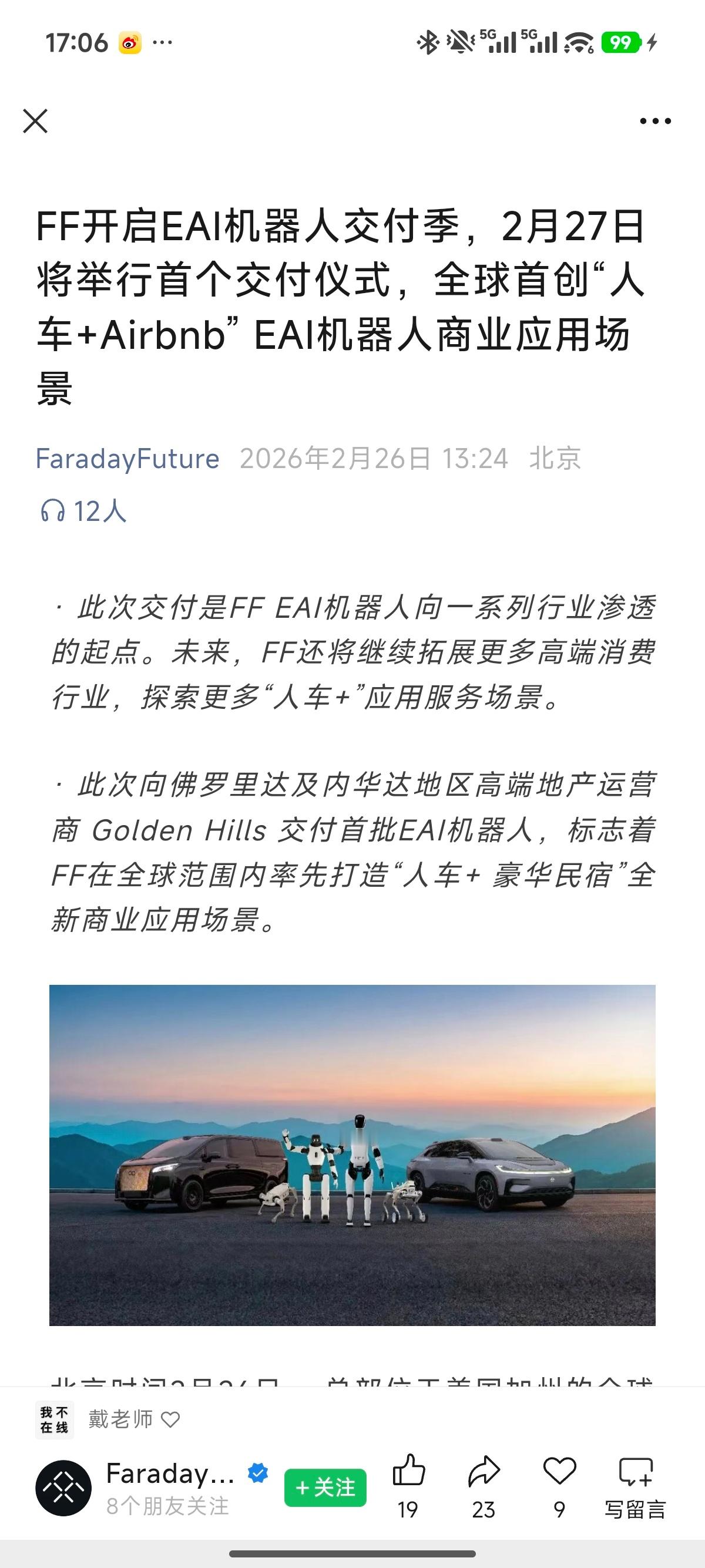 你看看你看看,人家在马德里开MWC,FF在这边整上EAI机器人交付,机器人ff全