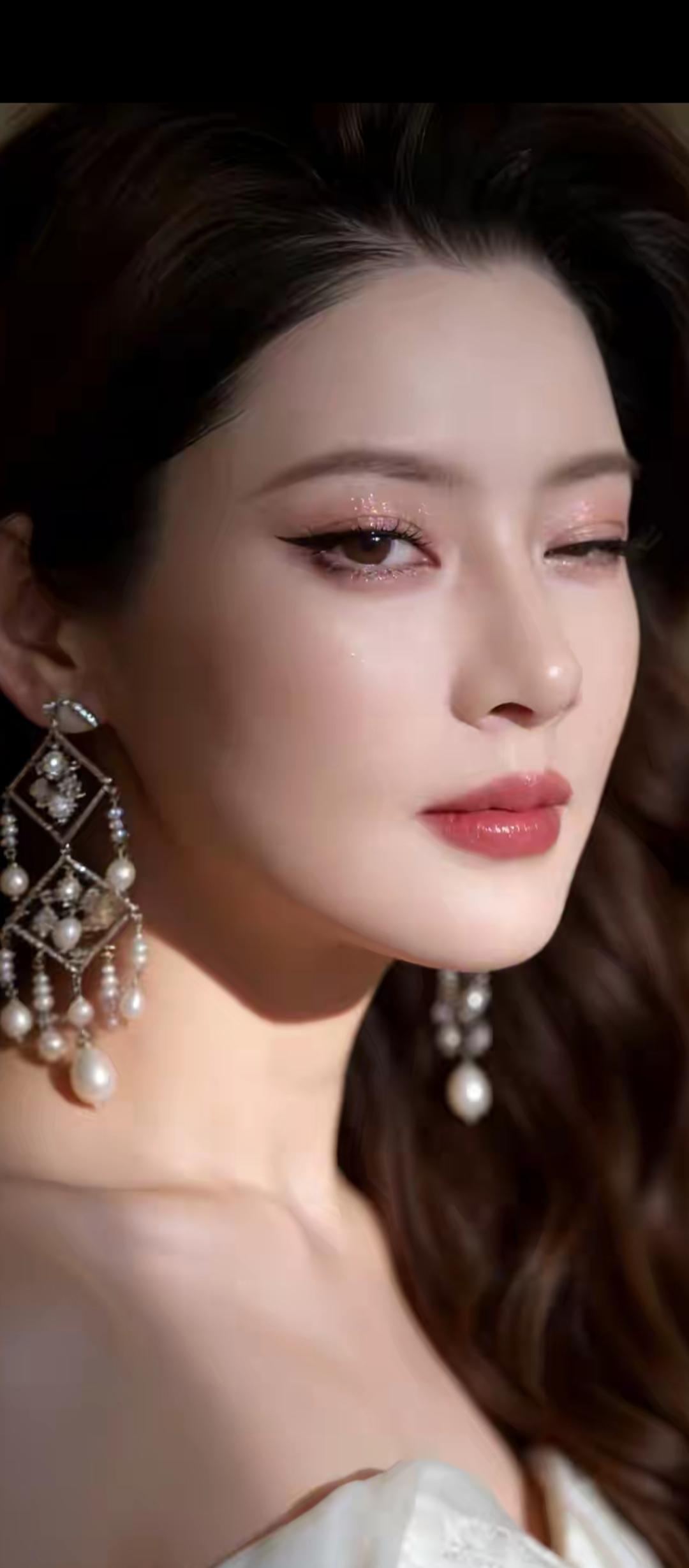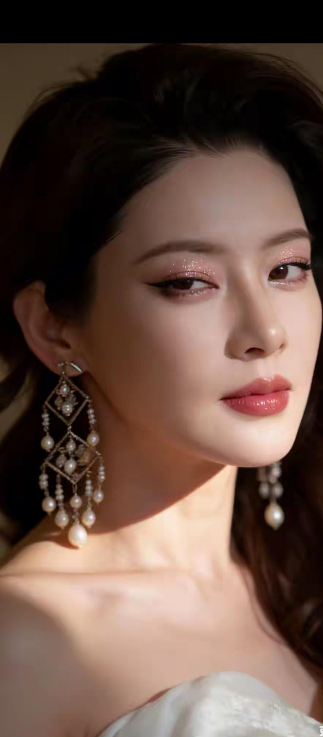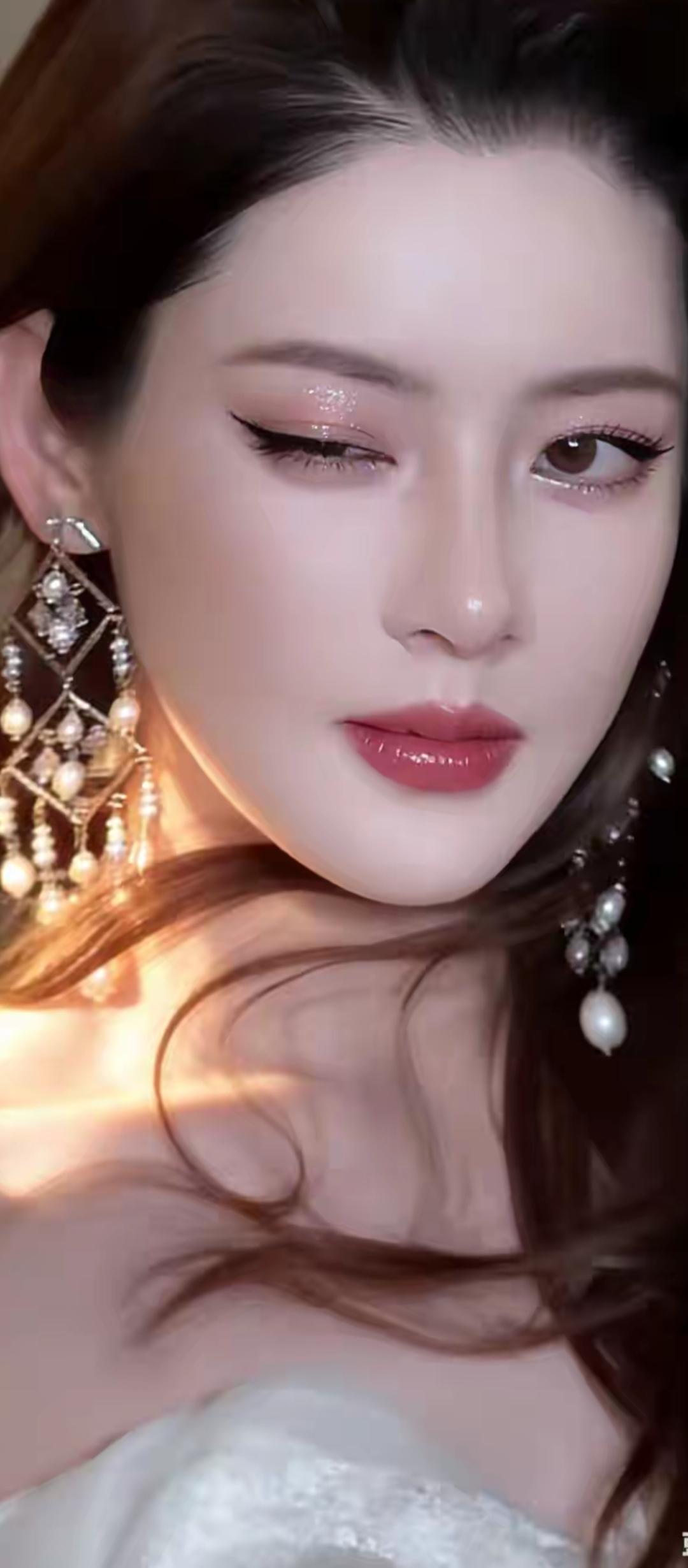 优雅红唇,闪耀耳环,白纱礼服,完美新娘💍✨