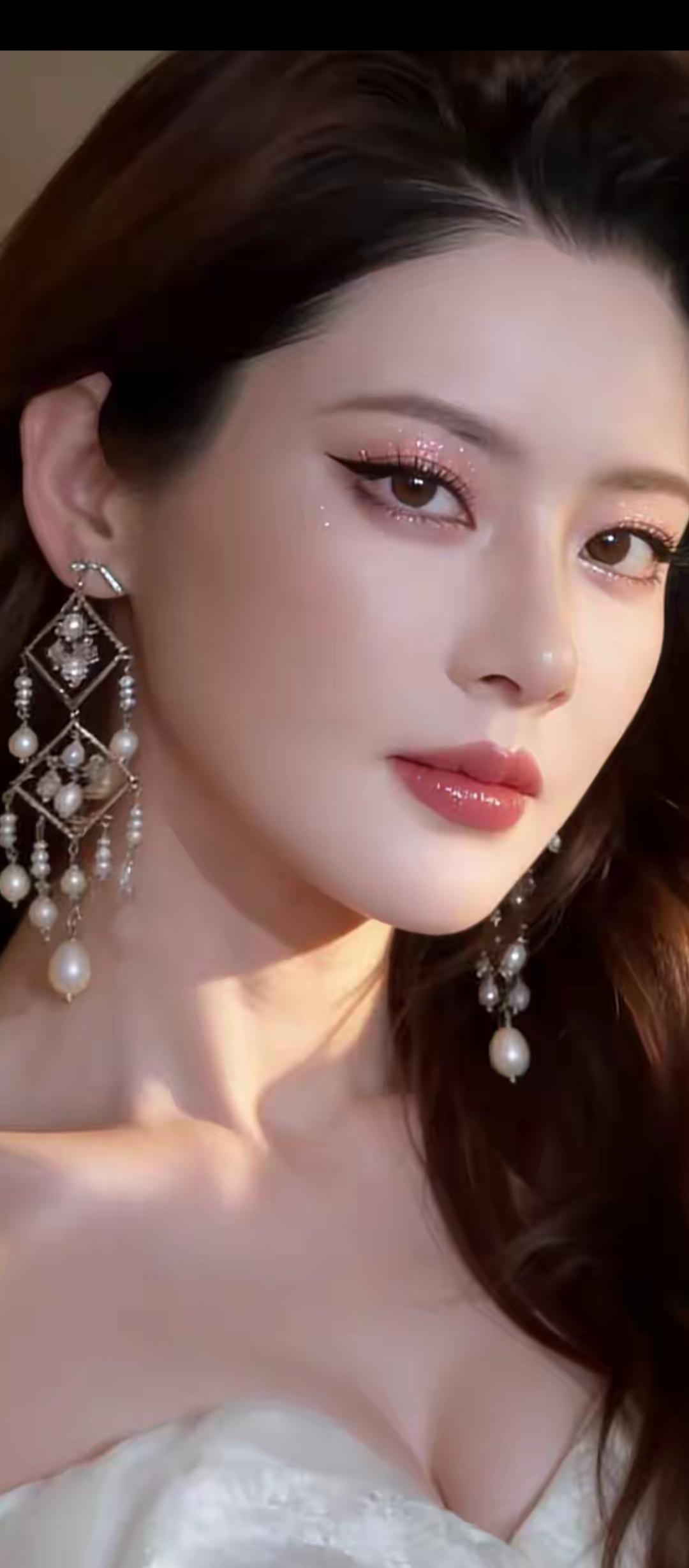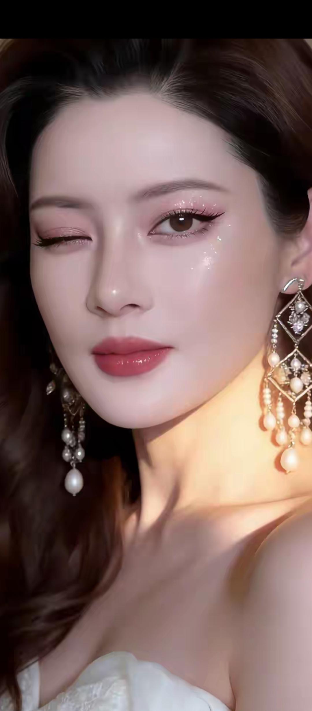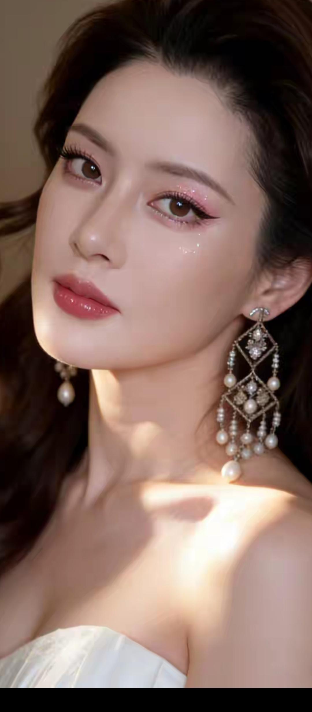 优雅红唇,闪耀耳环,白纱礼服,完美新娘💍✨