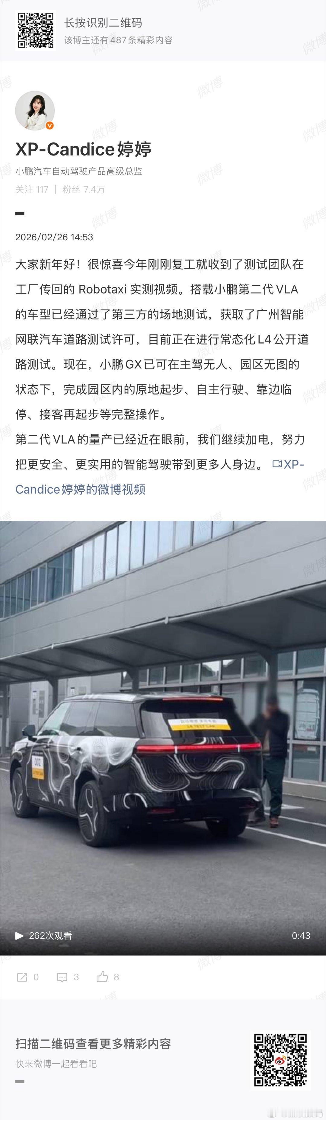 小鹏GX已实现无人驾驶上下客小鹏Robotaxi已获得路测资质小鹏第二代VLA的小鹏GX测试车在广州完成无安全员自动上下客实测。车辆在主驾无人、园区无图状态下,自如完成起步、行驶、临停、接客等全流程操作,“随叫随到、无站停车”,引发热议。