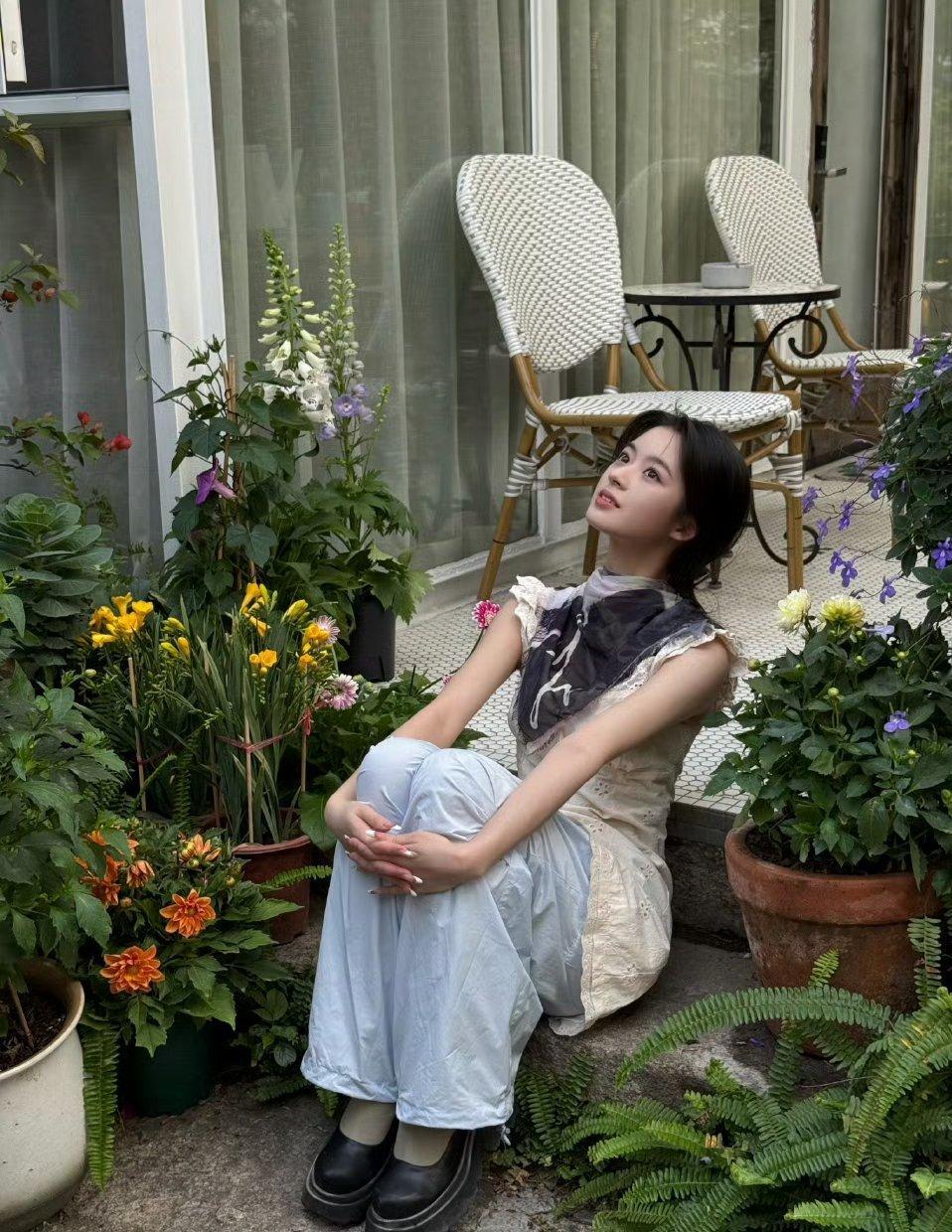 刘亦菲这条裤子挺养生,毕竟降温了肚脐眼必须护住啊