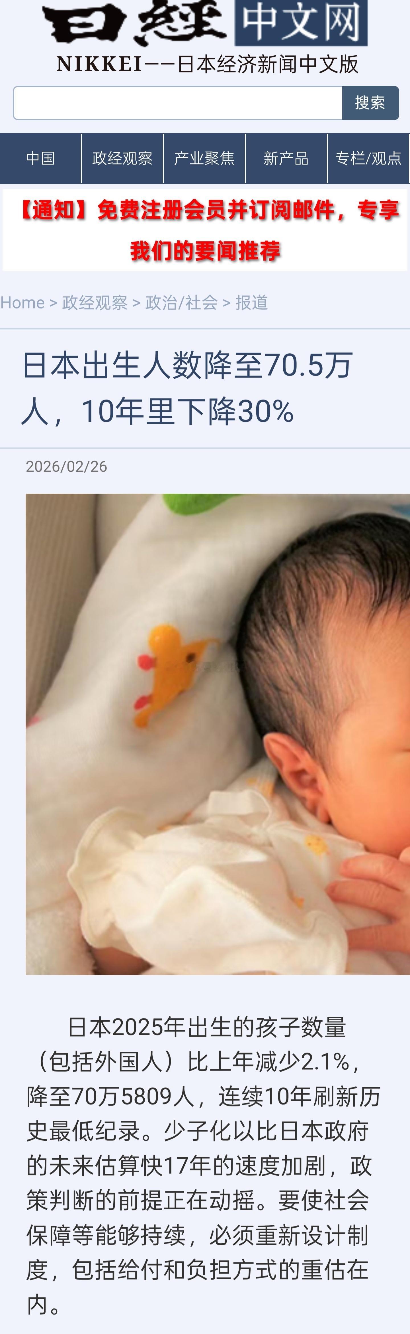 日本2025年出生的孩子数量(包括外国人)比上年减少2.1%,降至70.58万人,连续10年刷新历史最低纪录。日本国立社会保障与人口问题研究所2023年估算,包括外国人在内的出生人数降至70万人区间将是2042年,而实际年份已经大幅提前近17年,政策判断的前提正在动摇。要使社会保障等能够持续,必须重新设计制度,包括给付和负担方式的重估在内。海外新鲜事