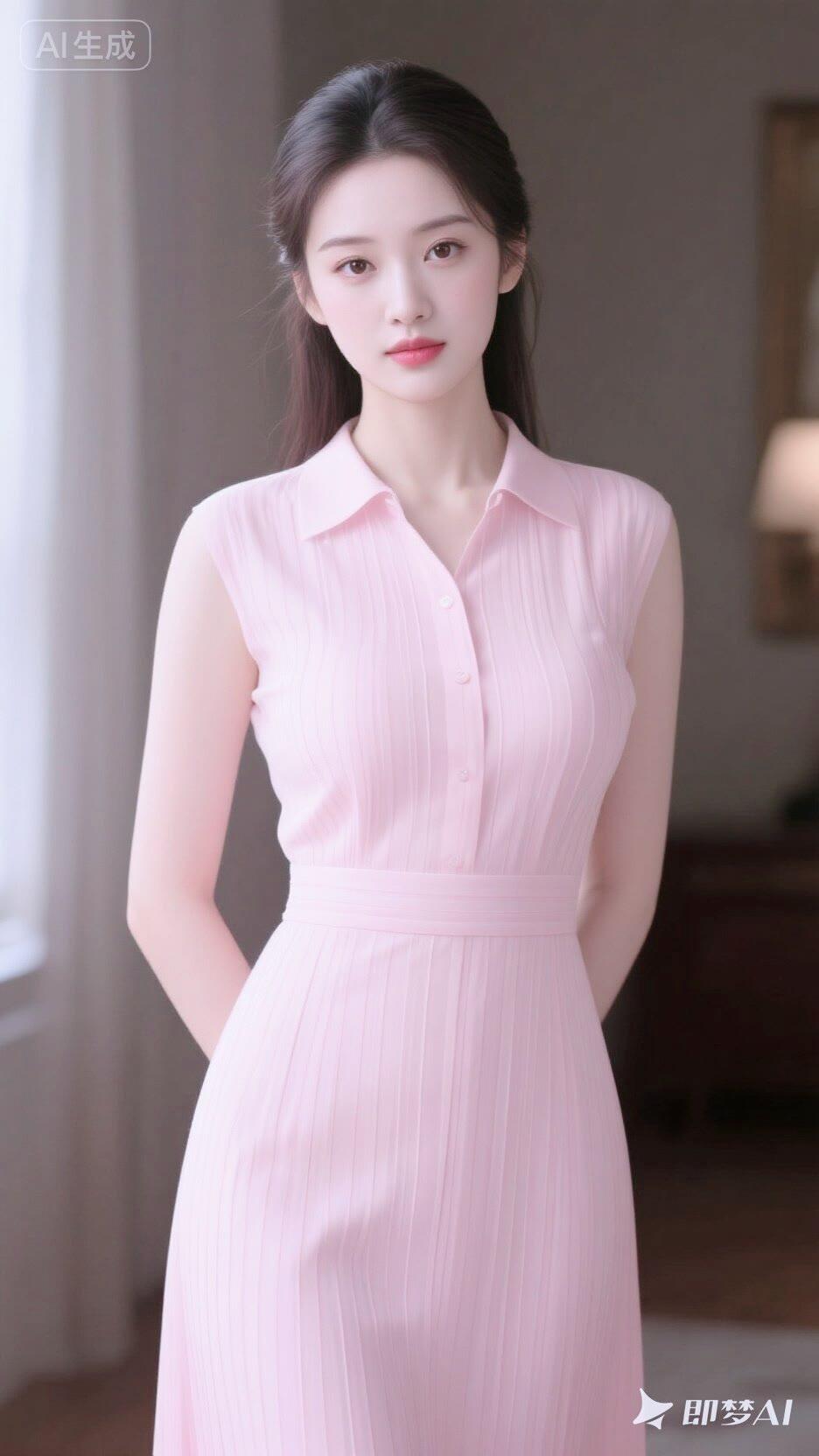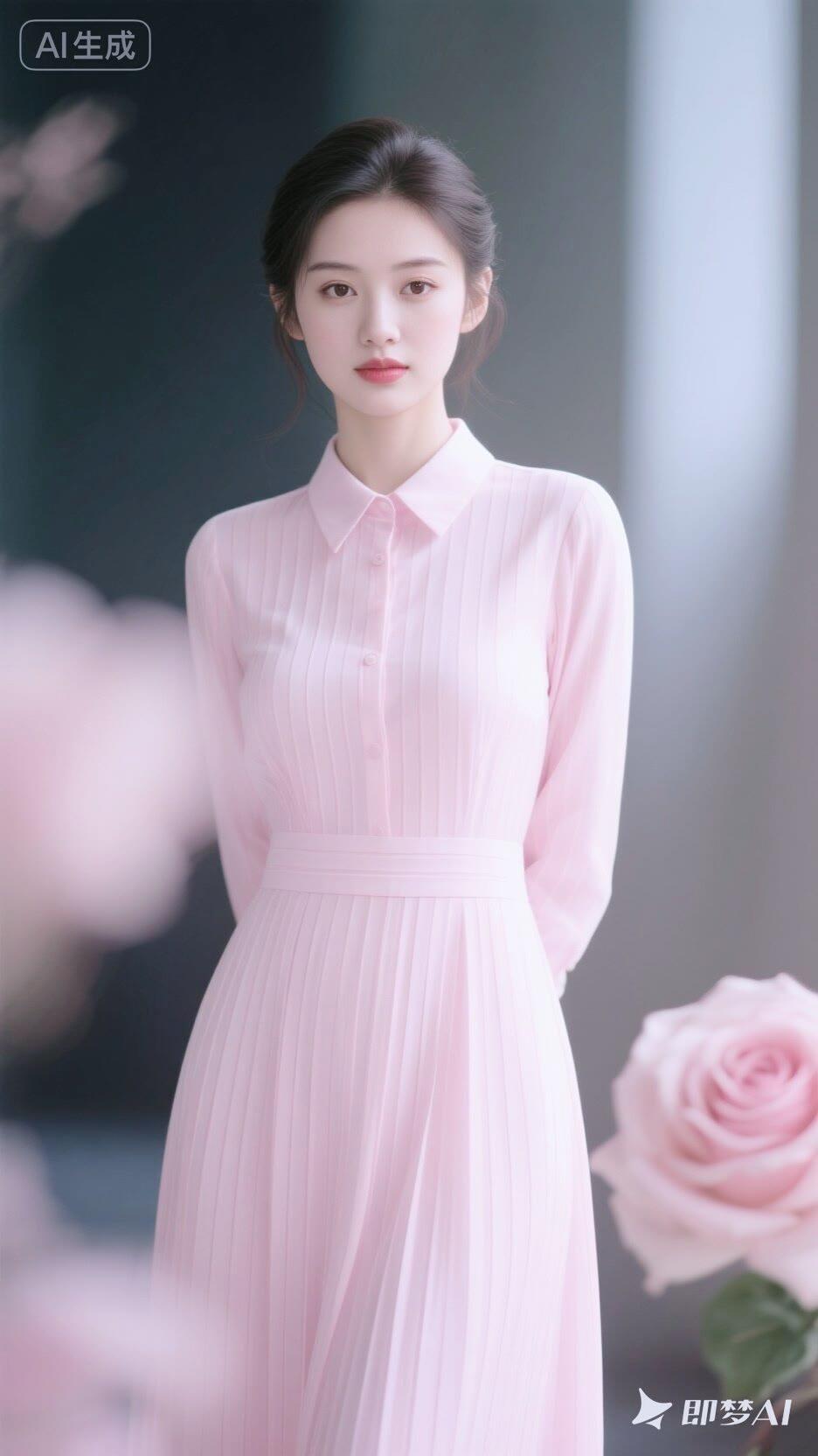 温柔粉调,甜美少女风,粉色连衣裙,清新自然,尽显优雅气质。