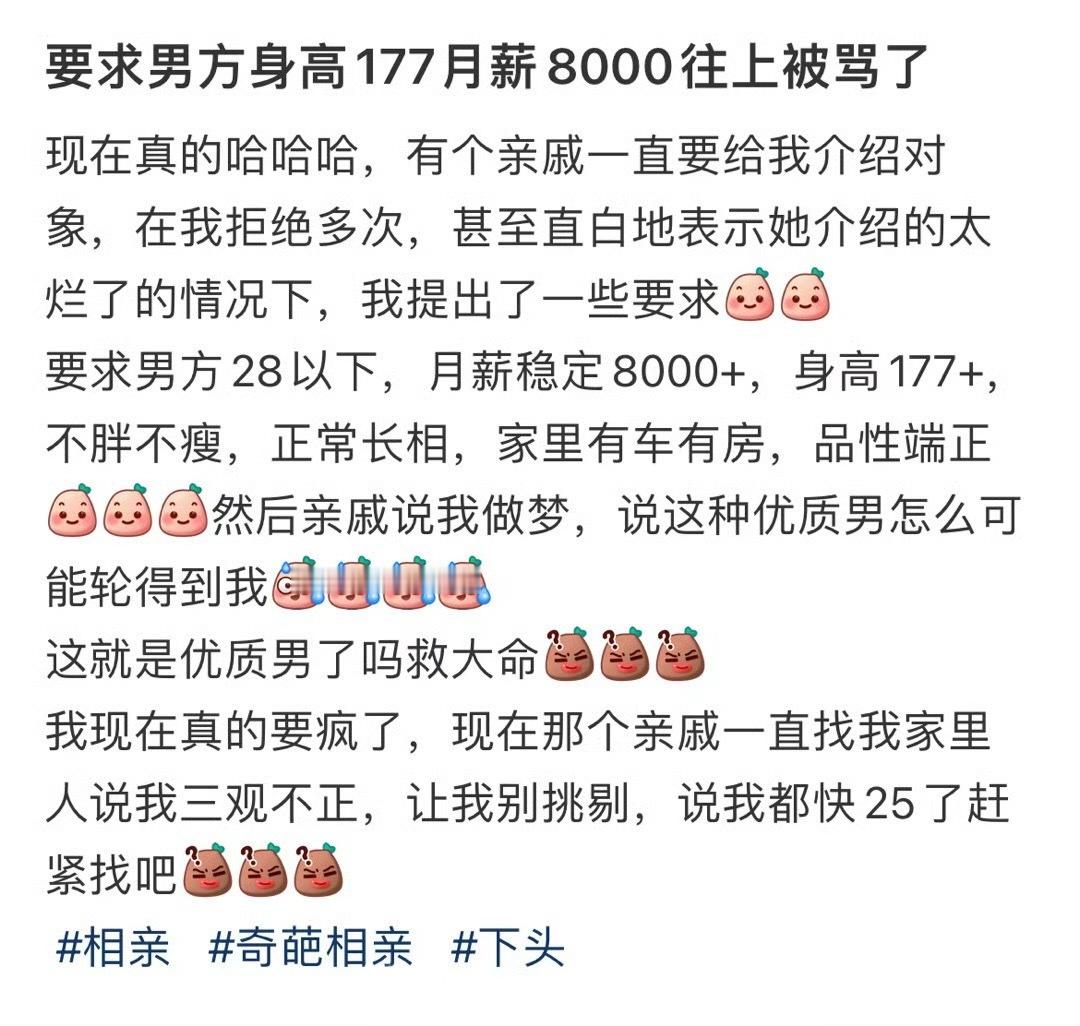 要求男方身高177月薪8000往上被骂了 !!!