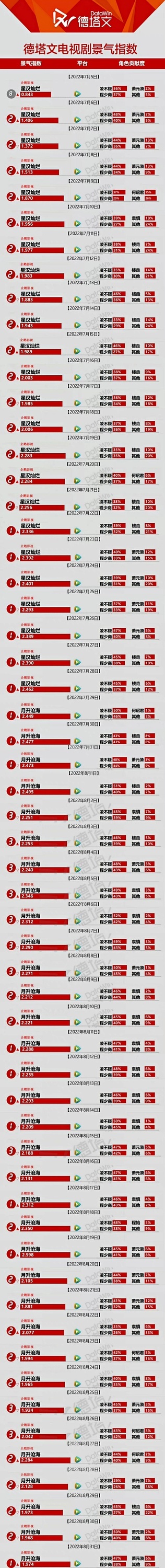 看看星汉灿烂陈芊芊长歌行等剧播期间到底谁更火