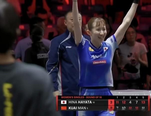 蒯曼2-3输给早田希娜,止步16强,决胜局被逆转的呀。 早田希娜激动的掩面,她的教练笑的牙都要感冒了。 新加坡大满贯,蒯曼vs早田希娜,以往交手过三次,100%胜率。 今天的比赛,蒯曼先丢两局,大比分0-2落后, 连追两局到决胜局, 决胜局5:1的开局,然后是7:5,9:7, 早田希娜下半局,开始变换发球,开始追分,蒯曼没有很快的解题, 11:13输掉比赛。 好好总结,下一次赢回来。 孙颖莎和石洵瑶的胜者,下一轮对战早田希娜, 中国队加油。