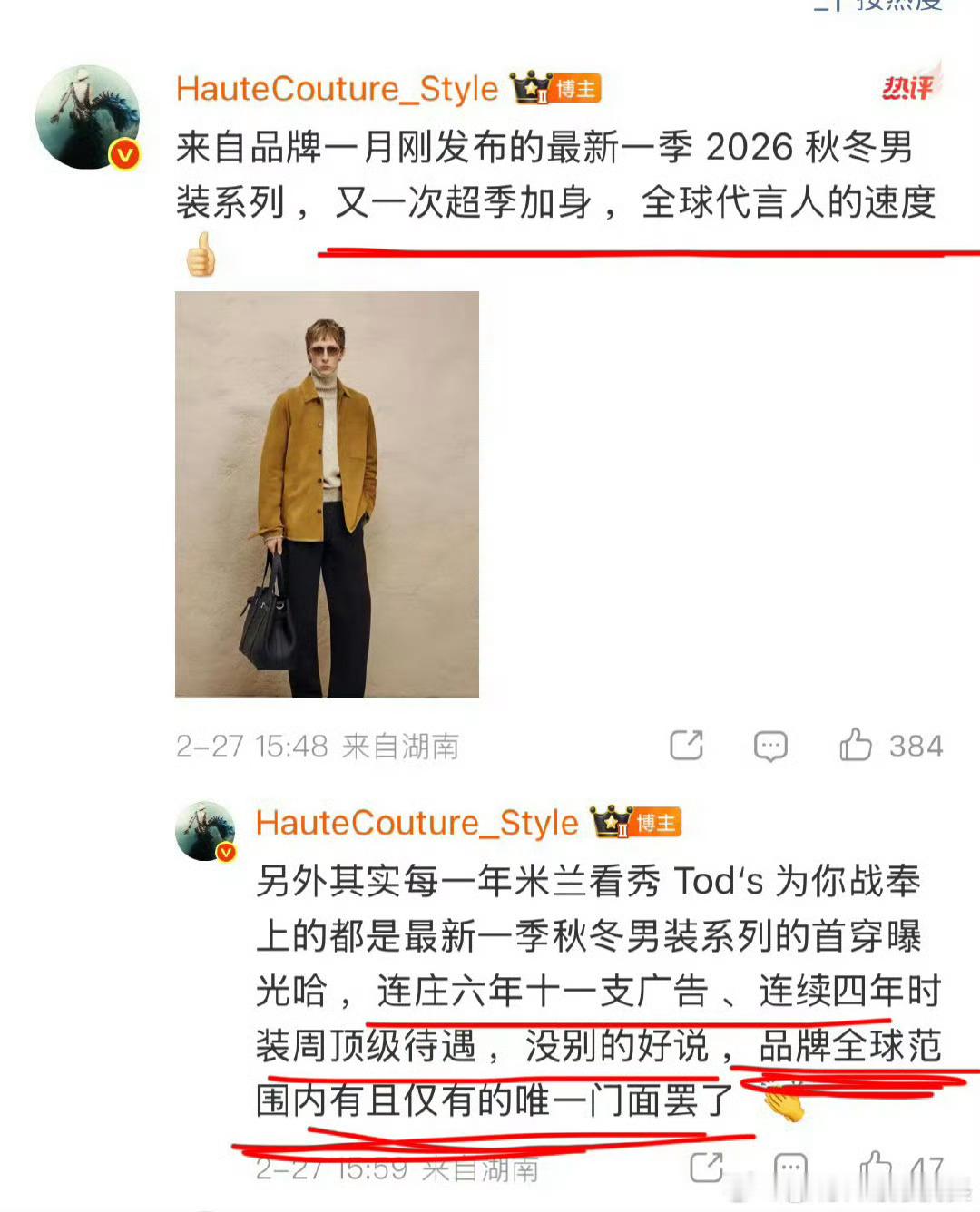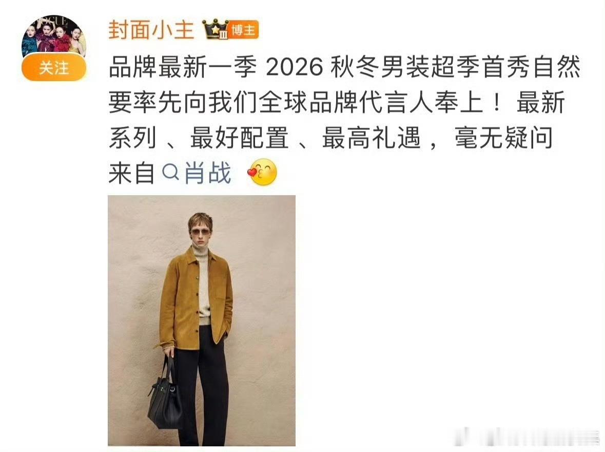 肖战不到秀场就不开始肖战又一次超季加身,来自品牌一月刚发布的最新一季 2026 秋冬男装系列 ,世界巨星的排面肖战还没到秀场就上了三个世趋词条👏已经上升到9、10、12位了!不愧是国际巨星,全球瞩目👏 肖战不到秀场就不开始