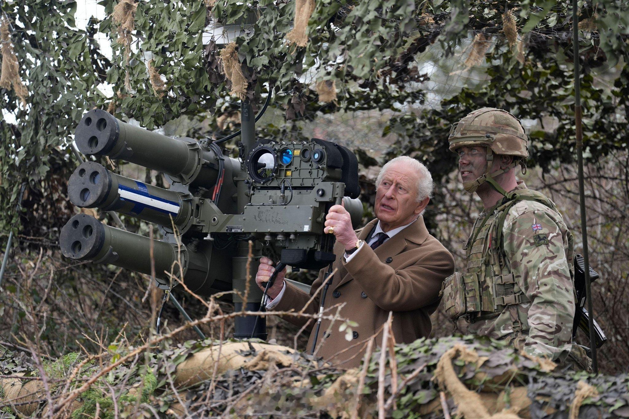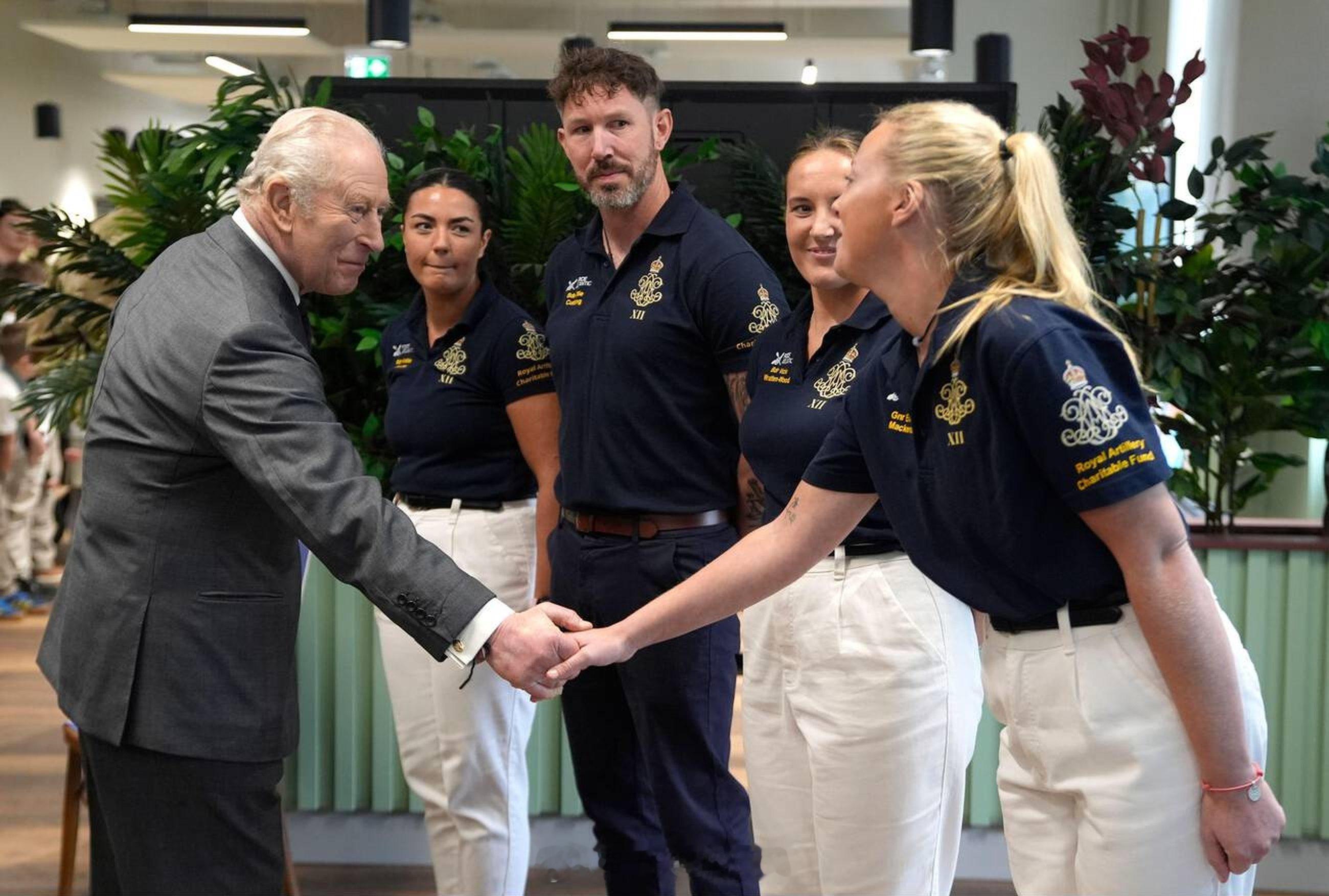 2026年2月26日,查尔斯三世在汉普郡贝克兵营视察皇家炮兵部队。